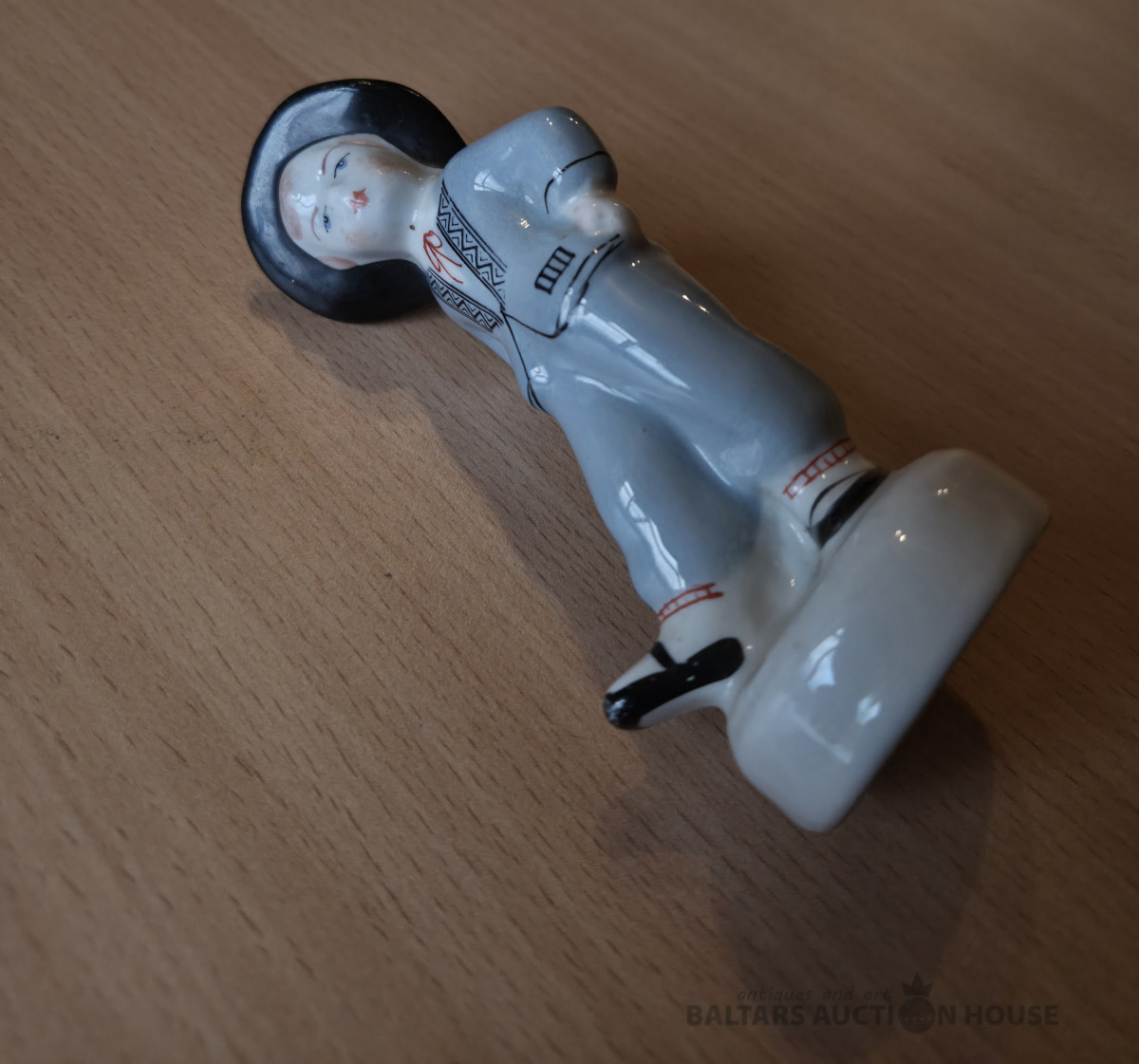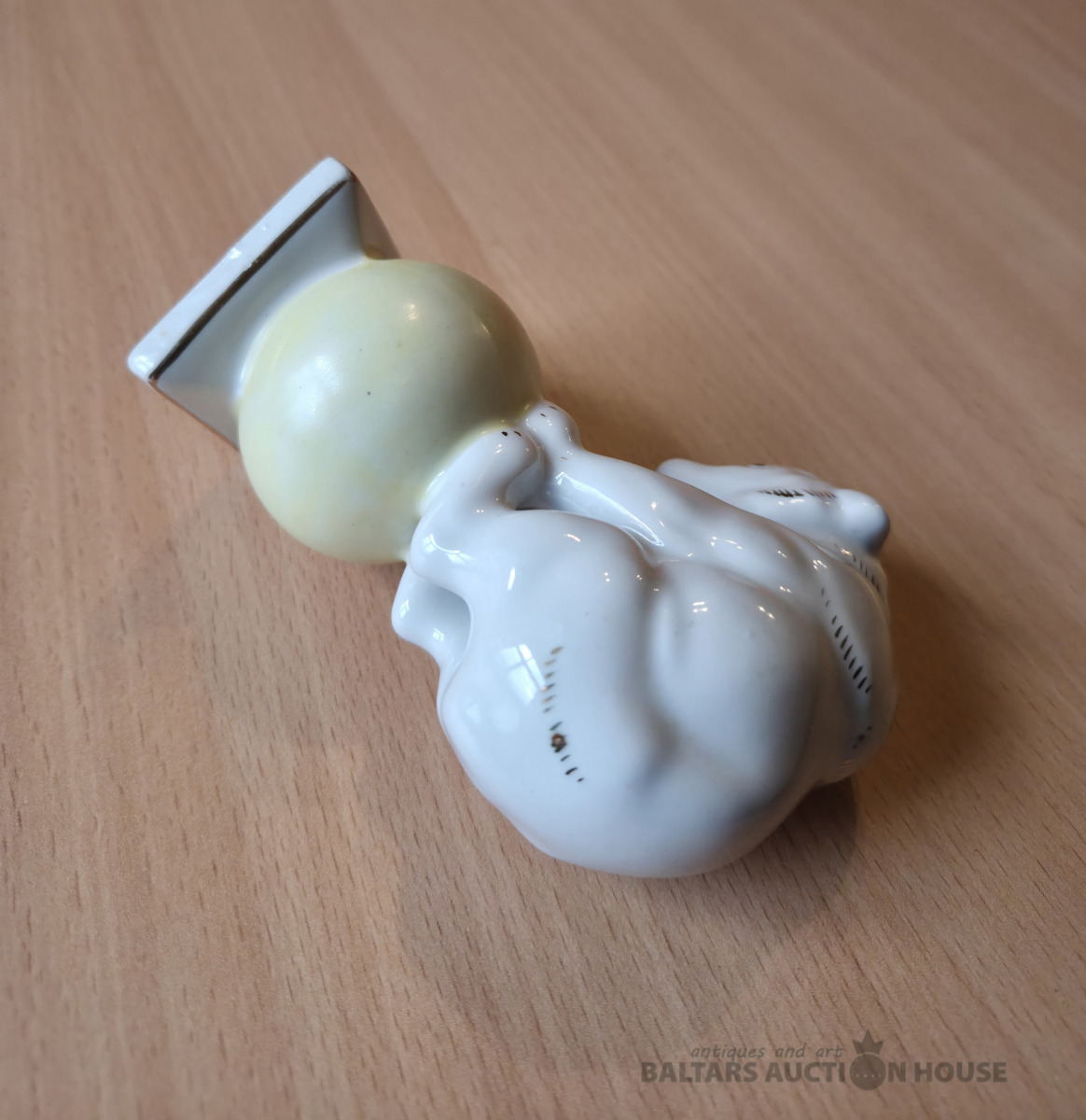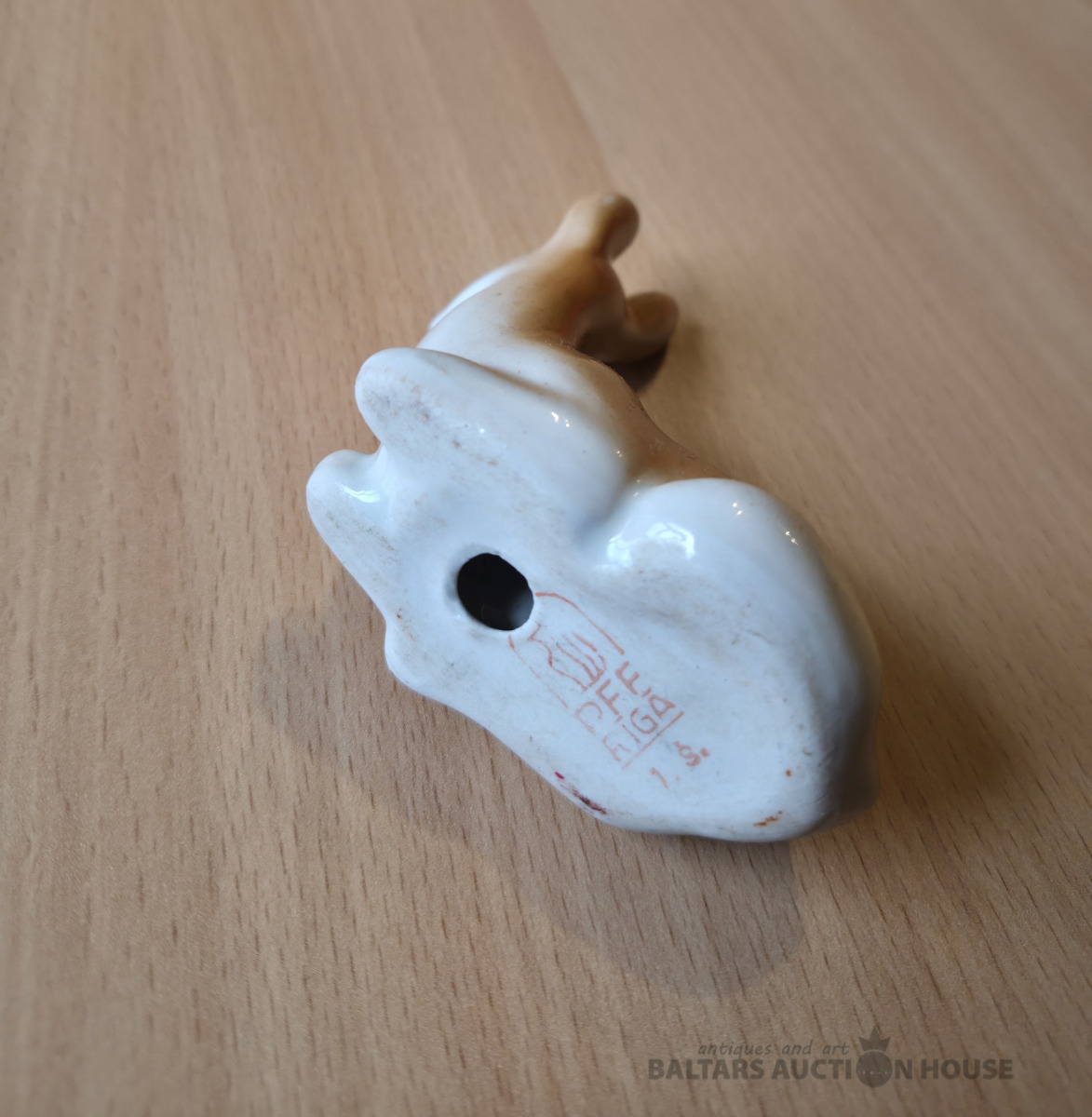 Rīgas porcelāns . Stirniņa , uz muguras laikam krāsas defekti