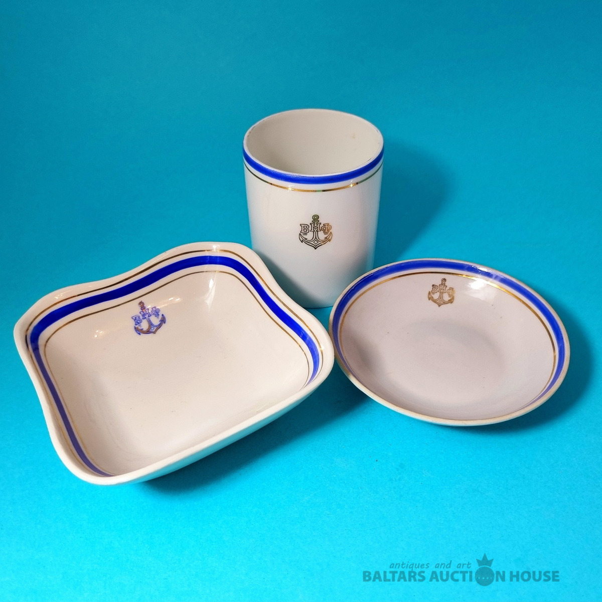 Glāze/tase, apakštase, Jūras kara flotes salātu bļoda. PSRS propaganda. Flote. Dulevo PSRS. 1960. gadi.