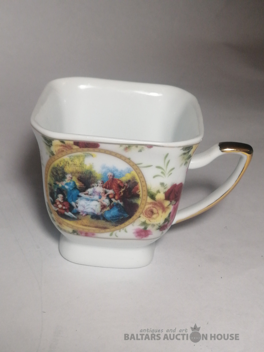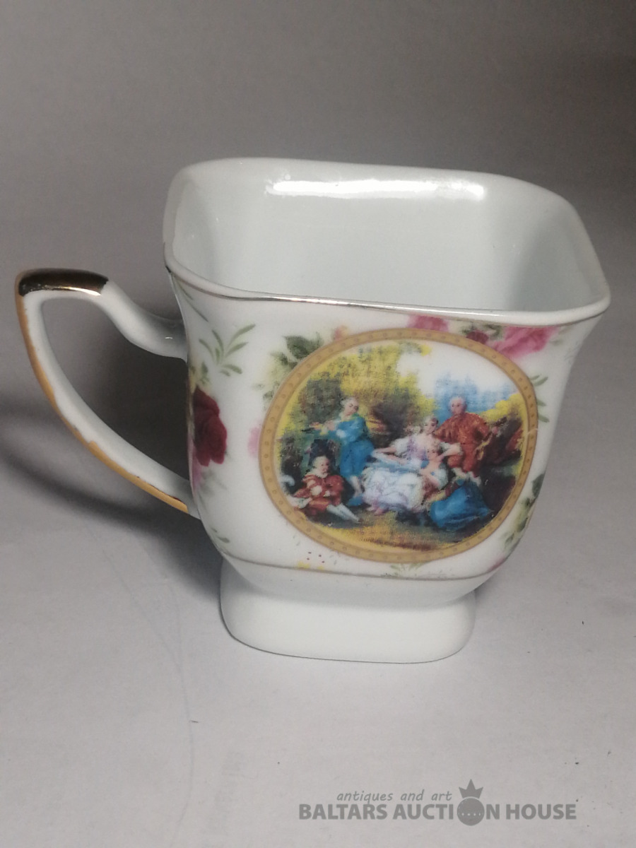 Četrstūraina krūzīte, porcelāns, zeltījums, augstums 7,5 cm, nelietota
