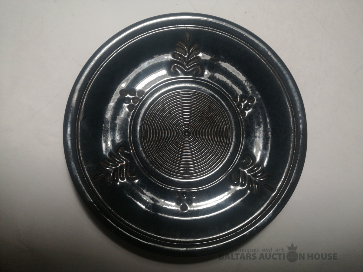 Dekoratīvs šķīvis ar eglītes ornamentu, diametrs 18 cm, māls, roku darbs, jauns