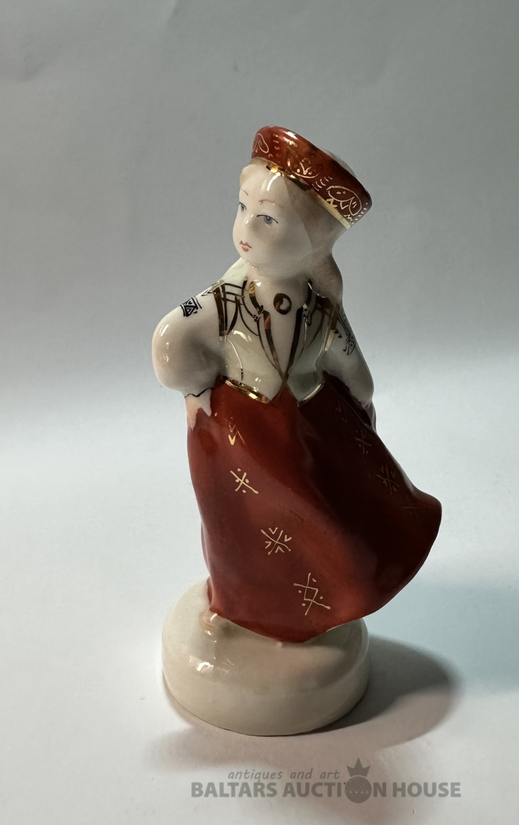 Porcelāna figūriņa DEJOTĀJA, RPR, 1950-tie gadi, augstums 11 cm, bez defektiem, bez krāsas vai zeltījuma zudumiem.