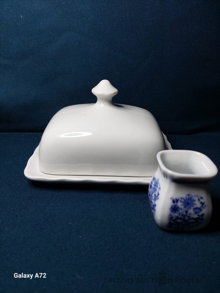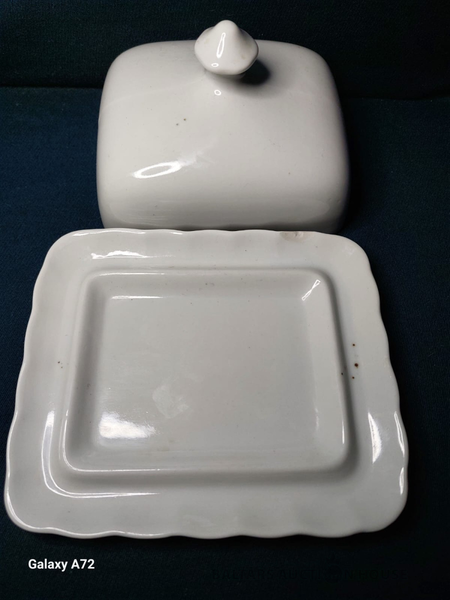 Sviesta trauks . Divi priekšmeti. , Sviesta trauka pamatne neliels nositums.