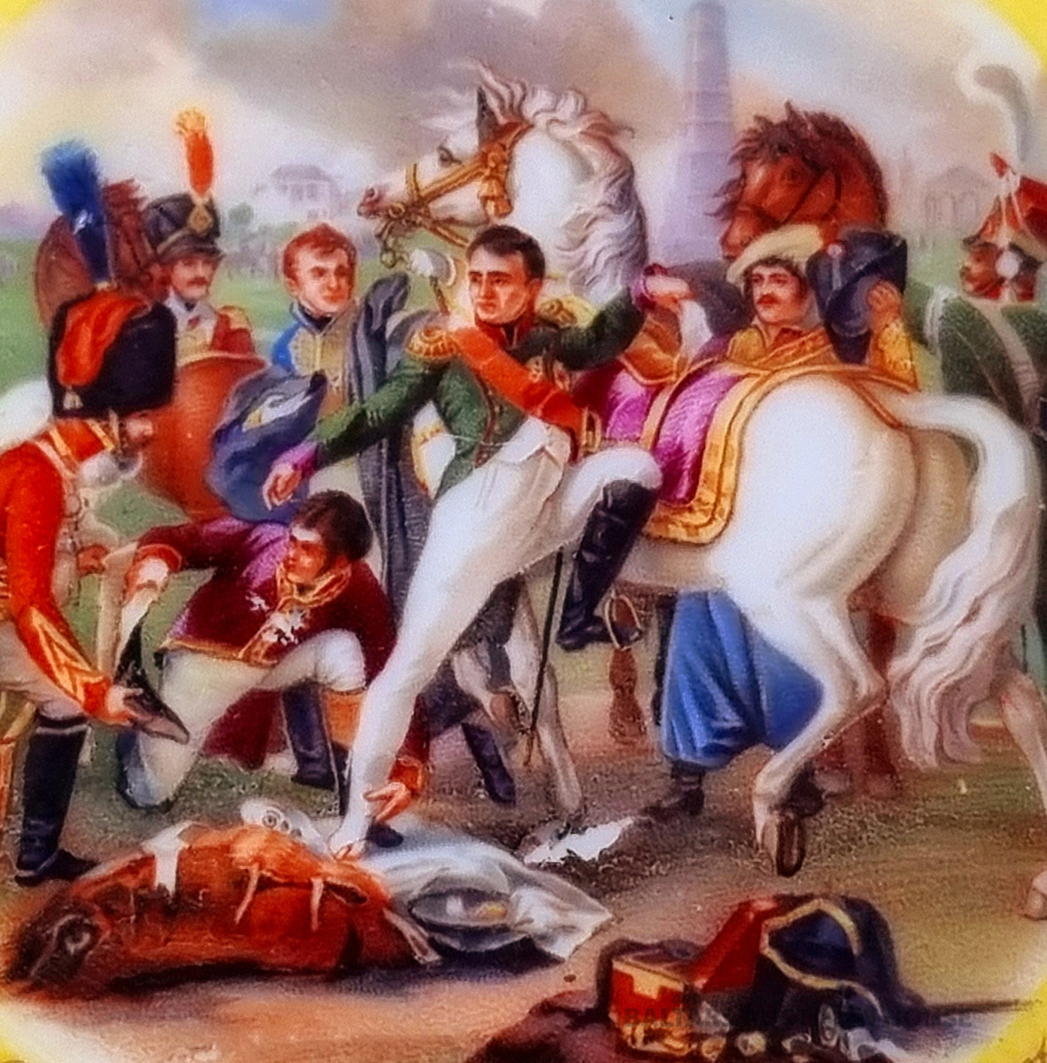 Deserta šķīvis, diametrs 15,3 cm. Korsikas piemiņa. LIMOŽA, FRANCIJA. Napoleons I tika sagūstīts netālu no Rēgensburgas. DŽAKO – KORSIKAS GALVASPILSĒTA.