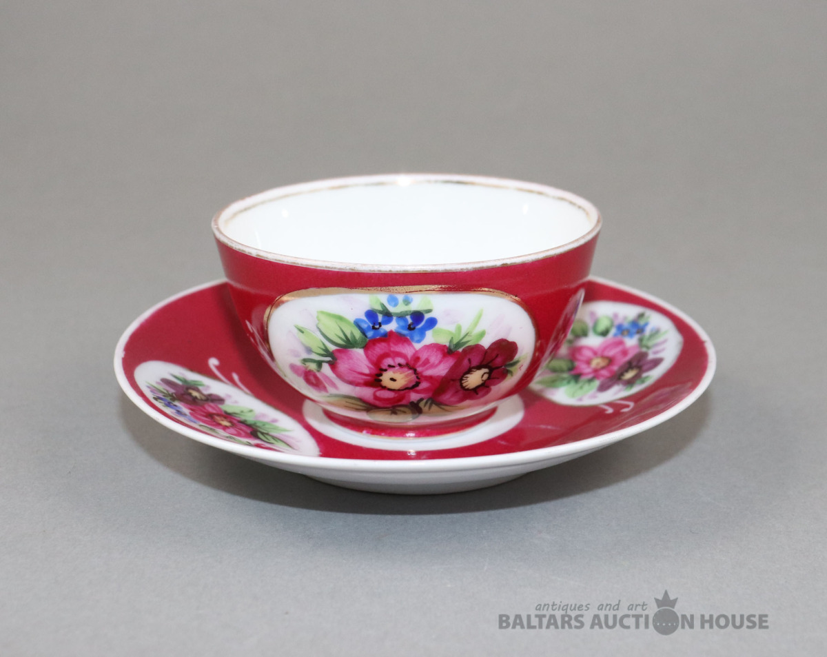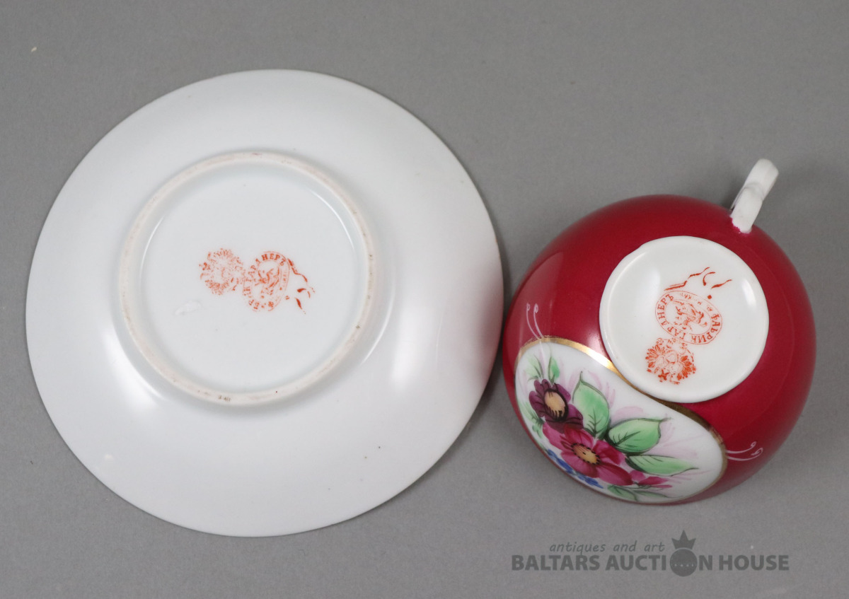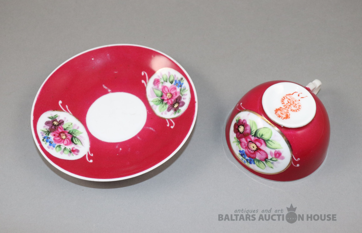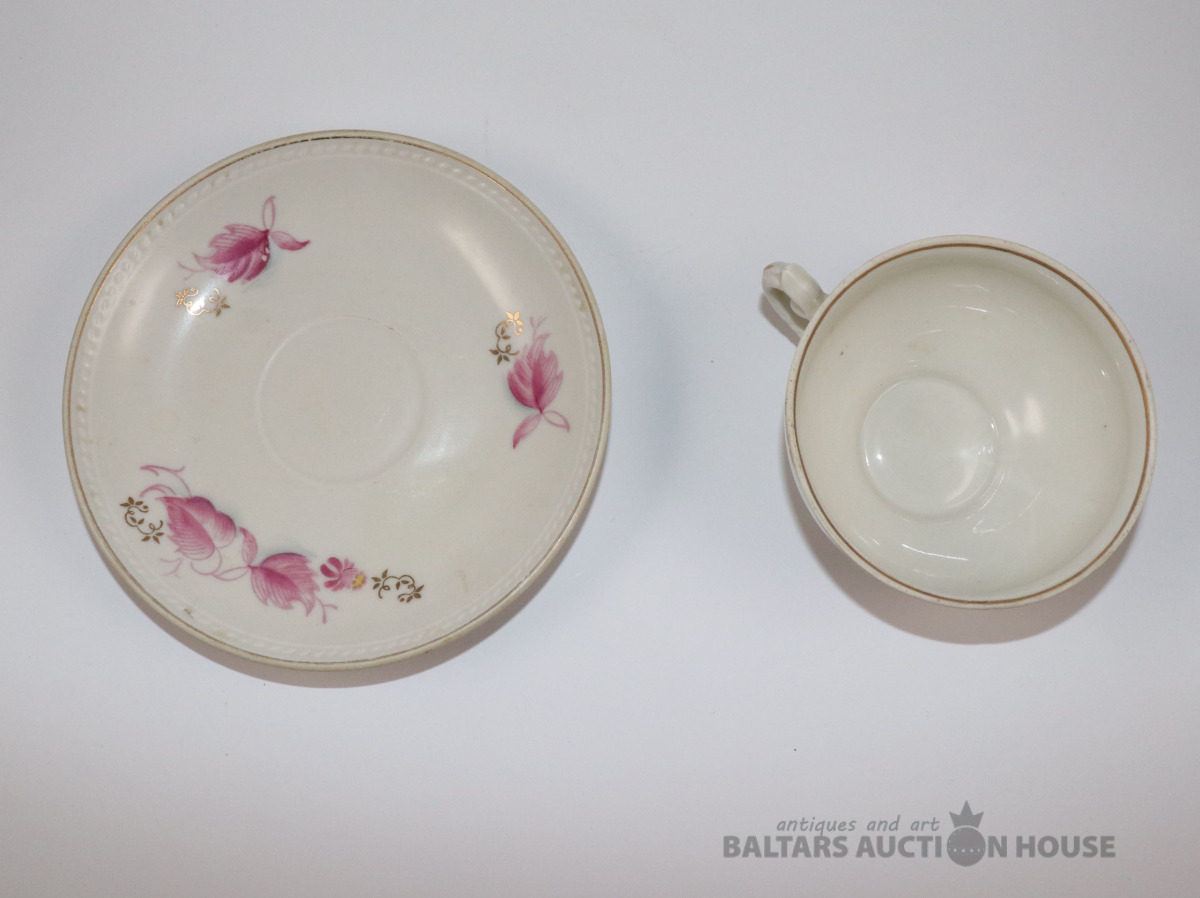 PORCELĀNA TASE AR APAKŠTASI. Rīga.