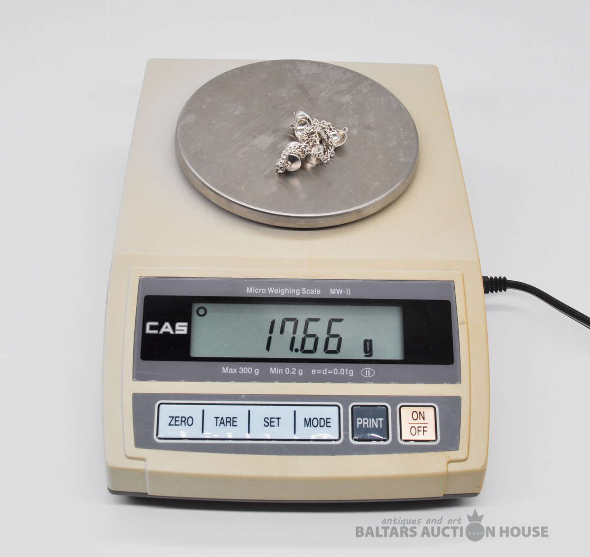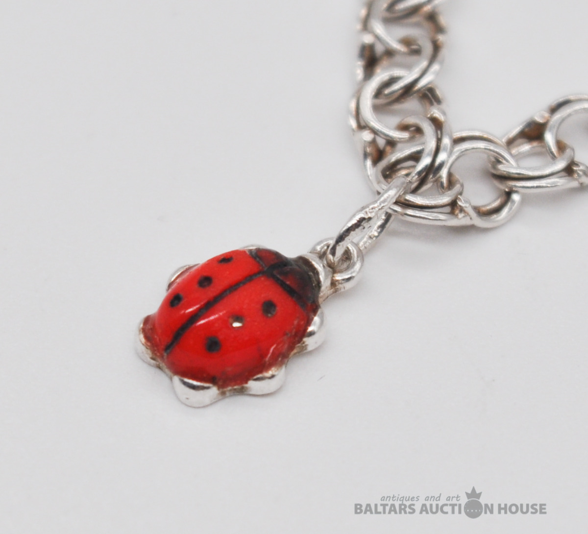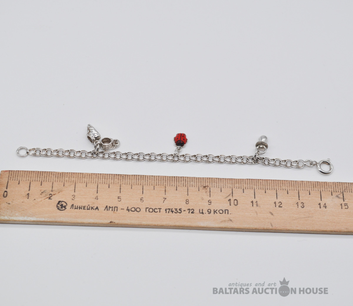Bērnu sudraba aproce ar piekariņiem. Garums 14.5 cm. Svars 5.8 grami.