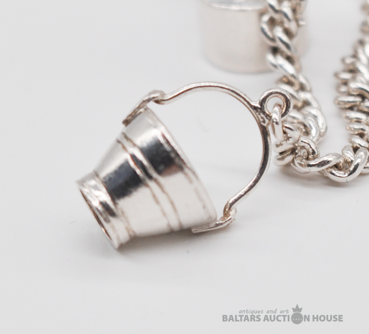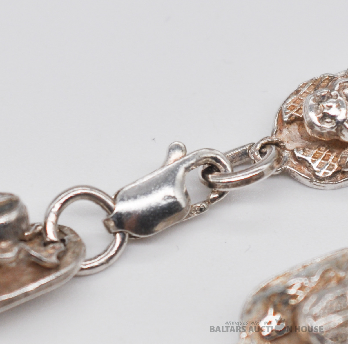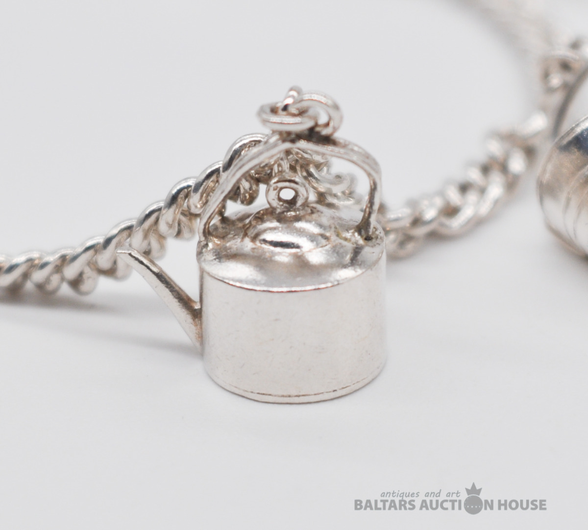 Bērnu sudraba aproce ar piekariņiem. Garums 14.5 cm. Svars 5.8 grami.