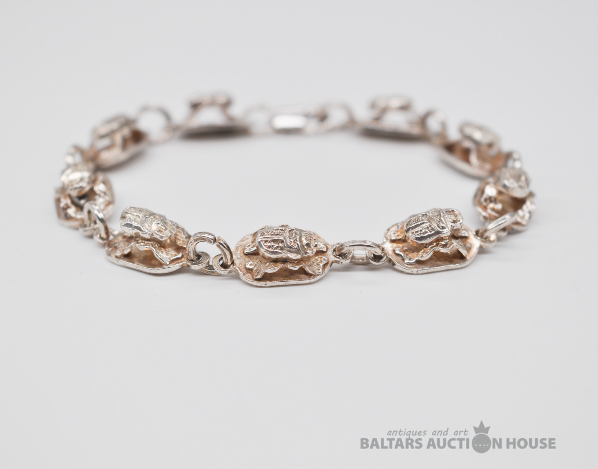 800 sudraba aproce ar skarabejiem. Latvijas prove. Garums 18 cm. Platums 8.5 mm. Svars 15.7 grami.