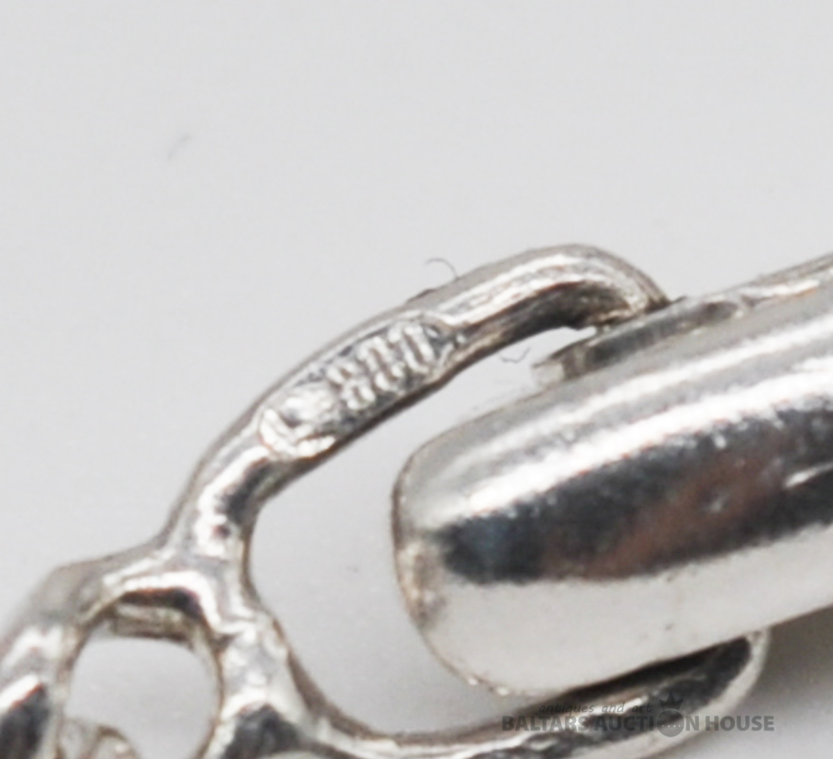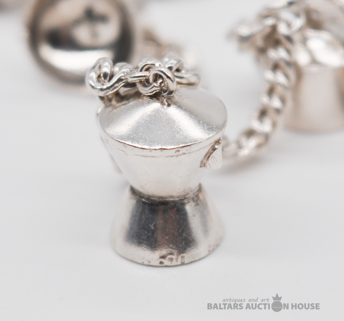 800 sudraba aproce ar virtuves tematikas piekariņiem. Garums 17.5 cm. Svars 17.6 grami.