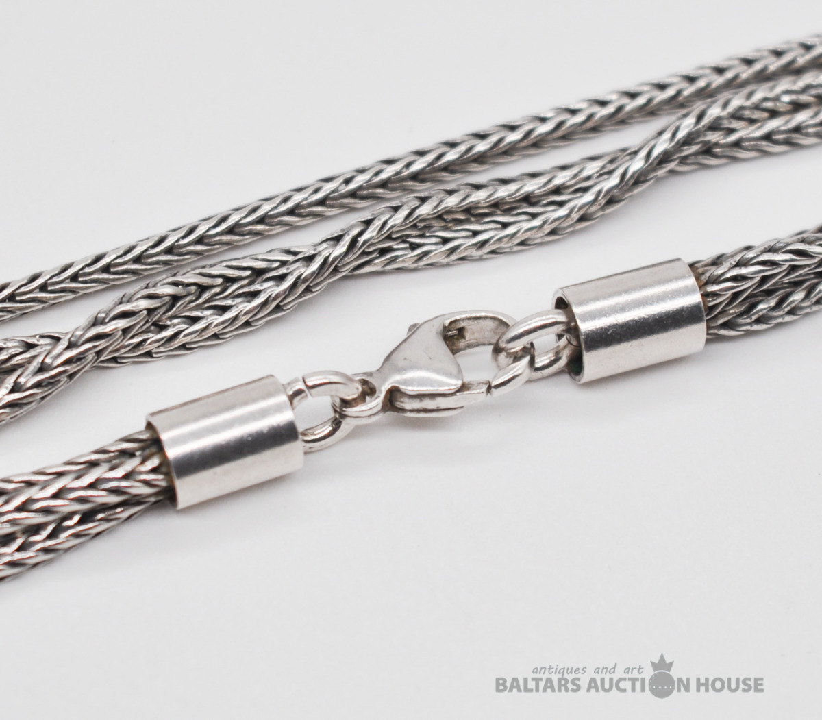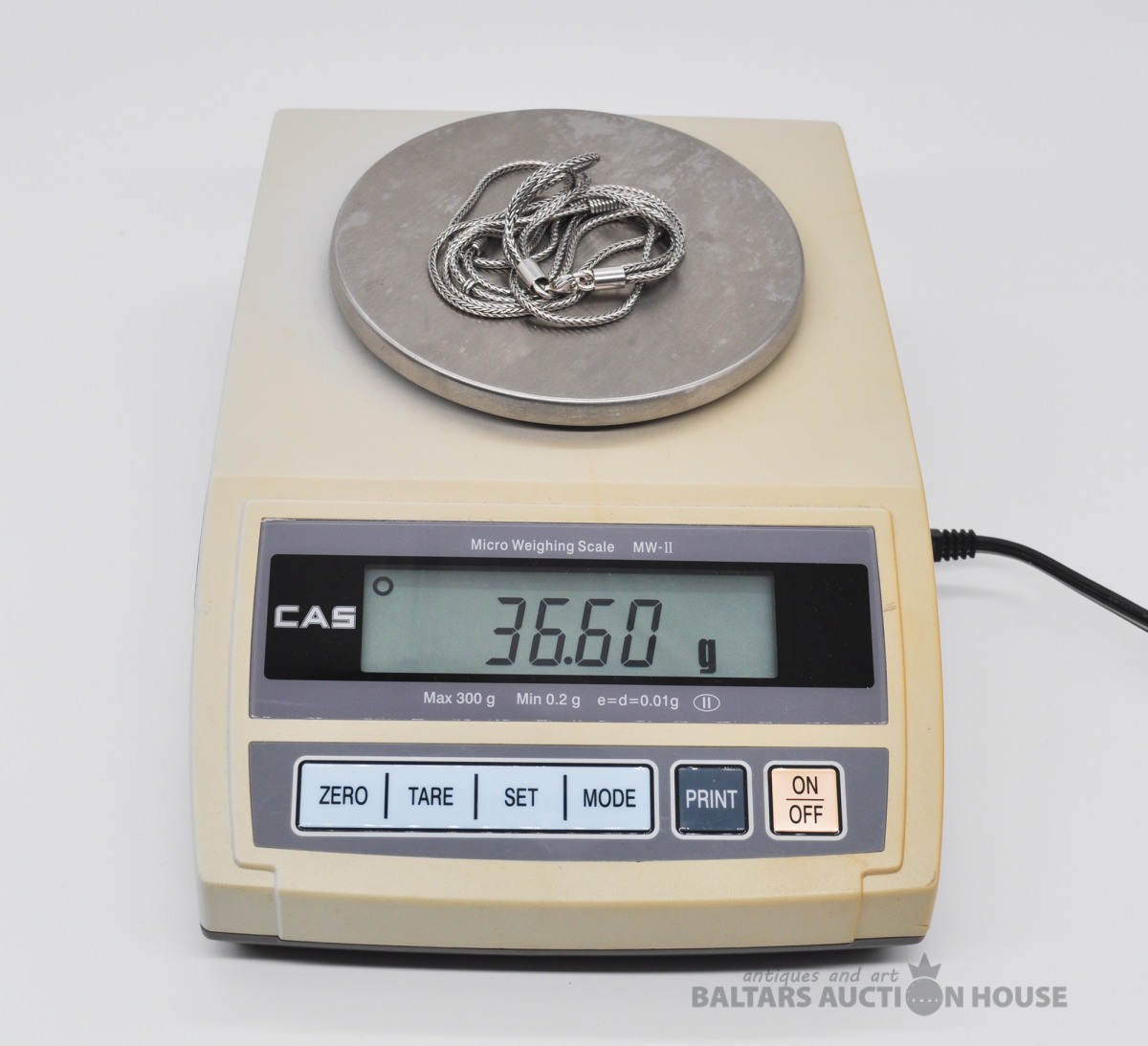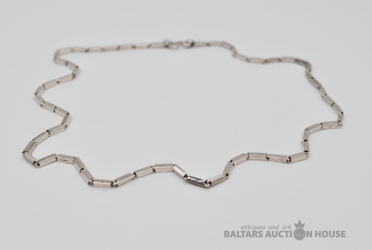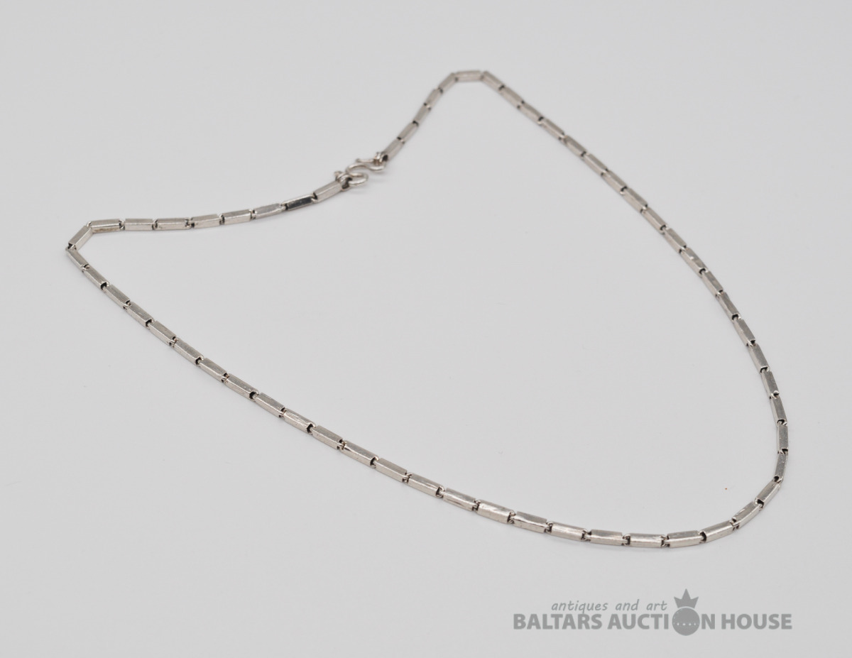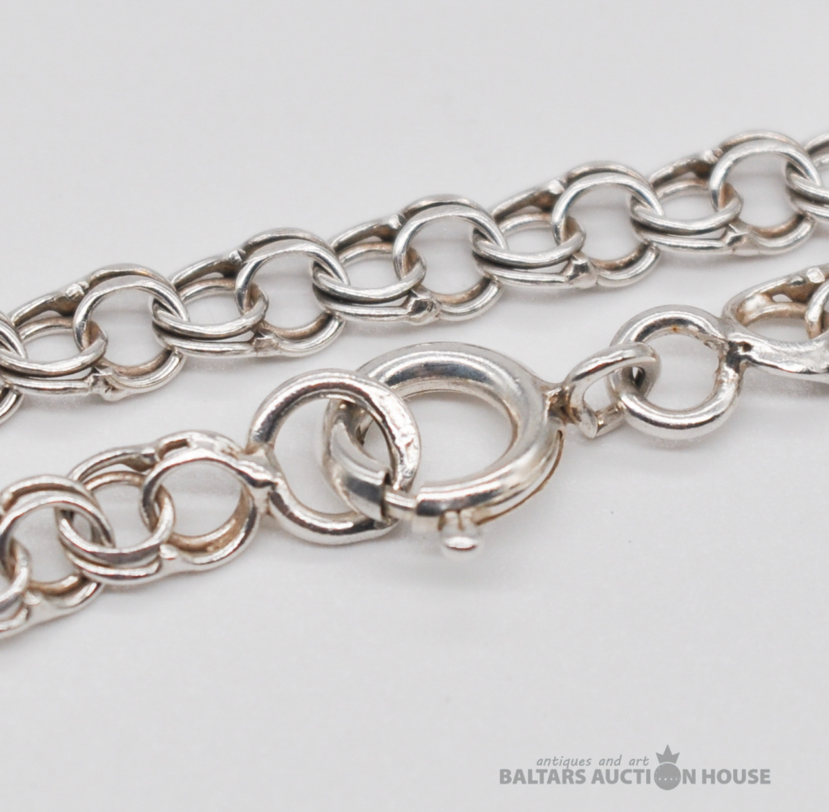 Sudraba ķēdīte. Latvijas prove. Garums 47 cm. Platums 2 mm. Svars 9.2 grami.
