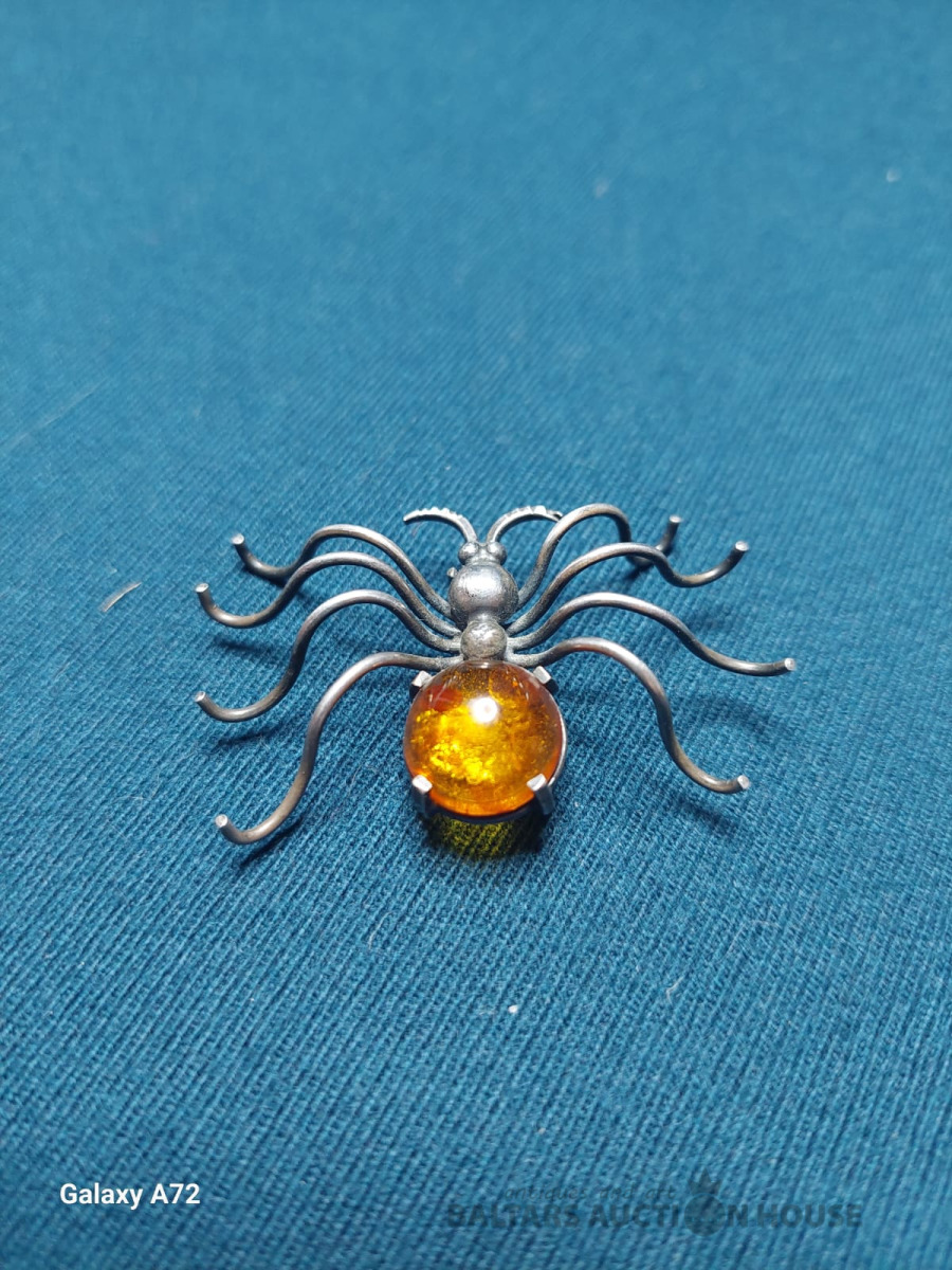 Sudraba piespraude zirneklis . 925 prove ., Izm 4,5x3cm.