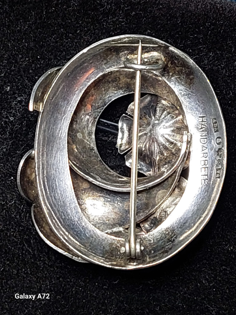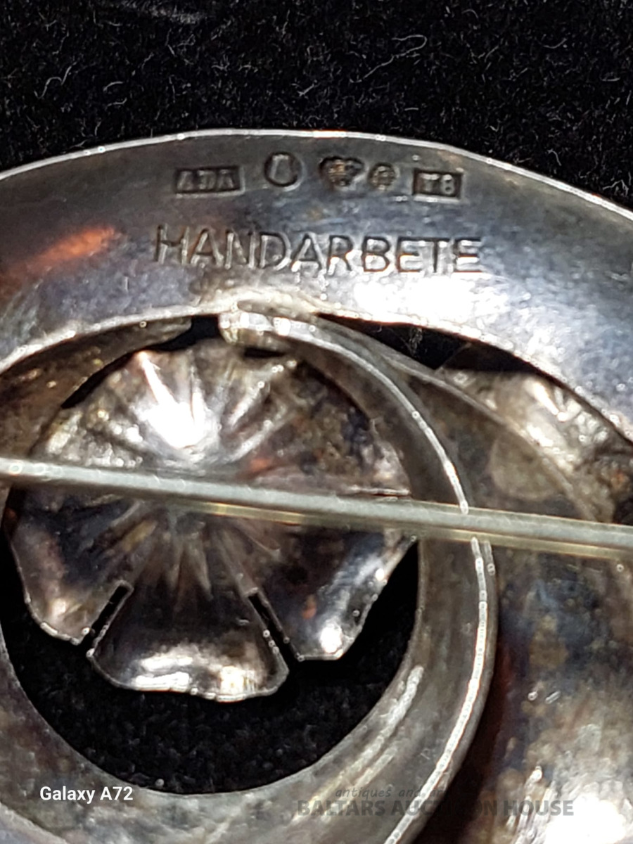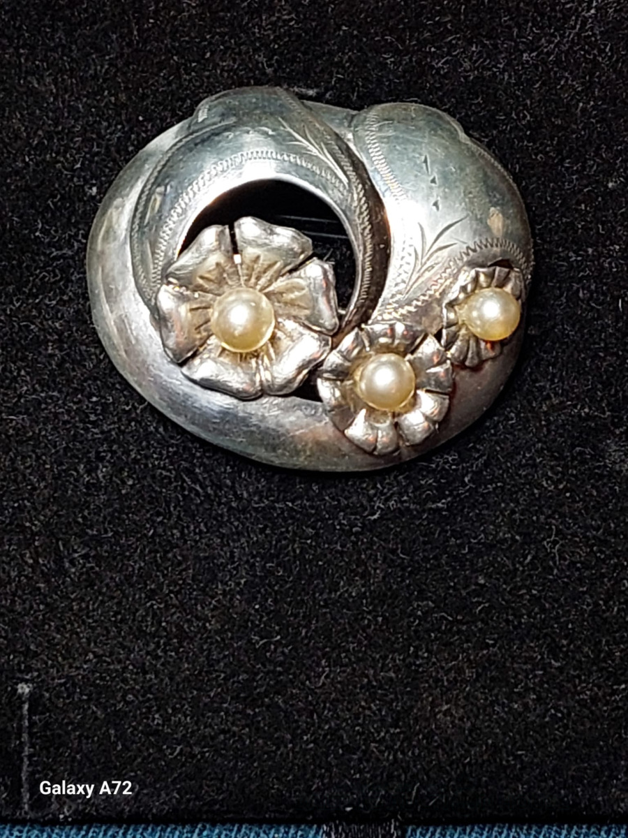 Sudraba piespraude ar dabīgam pērlēm .925 prove Zviedrija., Izm 4x4cm.