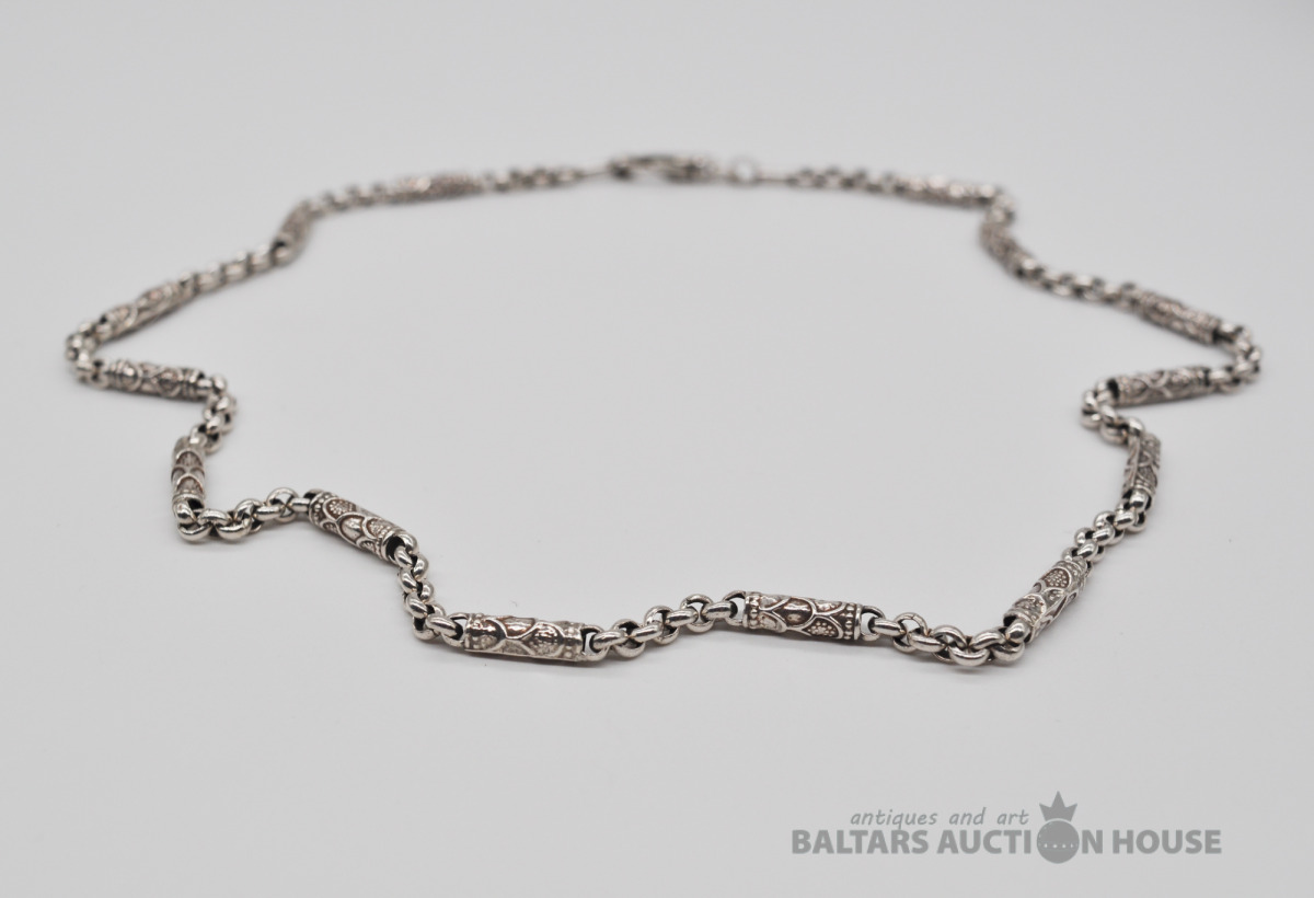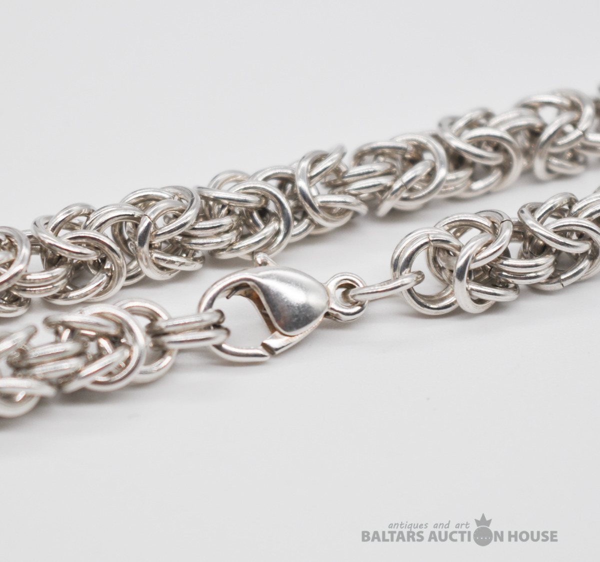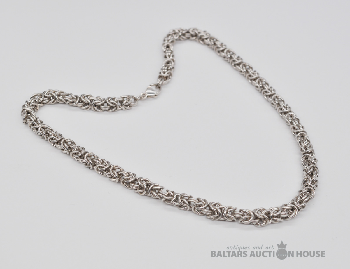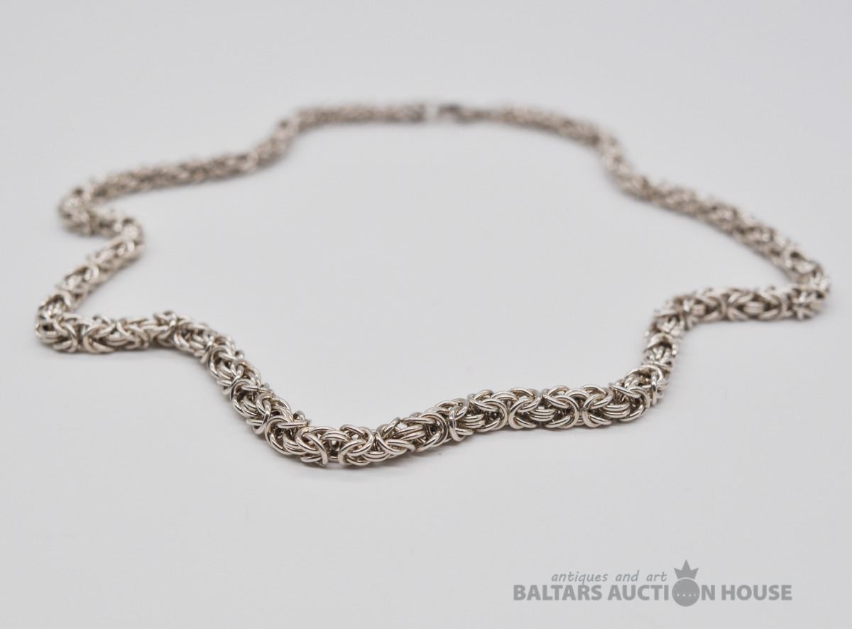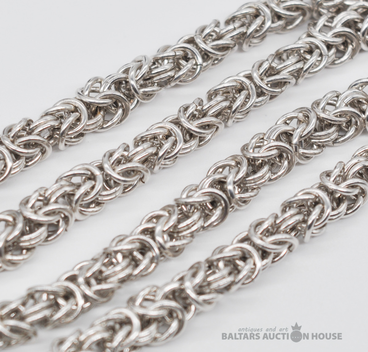 Sudraba ķēdīte. Roku darbs. Latvijas prove. Garums 43.5 cm. Platums 6 mm. Svars 55.3 grami.
