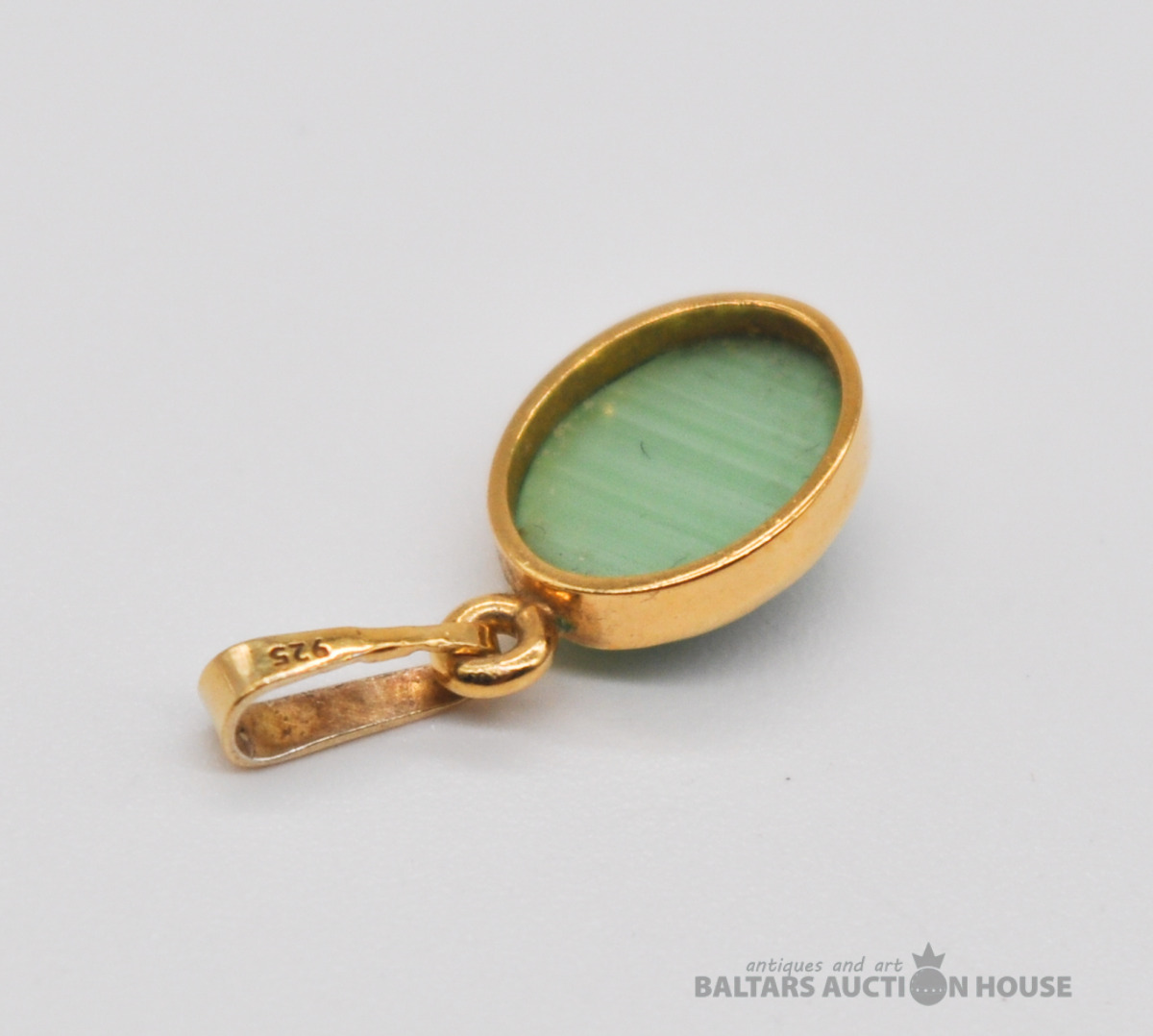 Apzeltīts sudraba piekariņš ar akmeni. Garums 20 mm. Svars 0.8 grami.