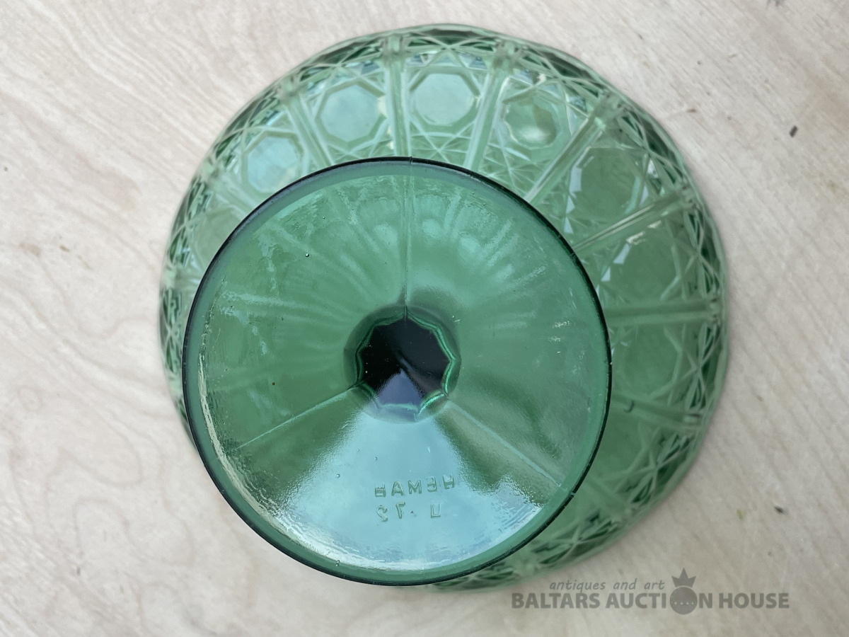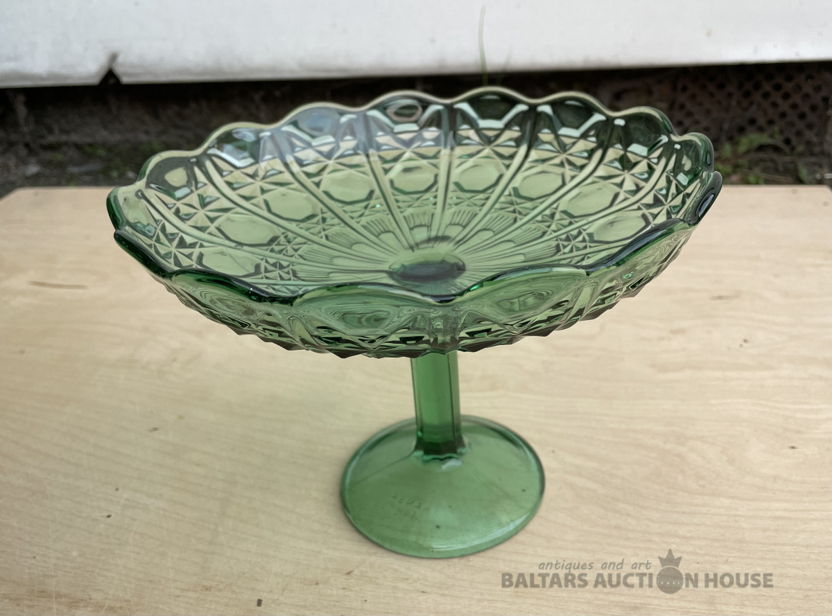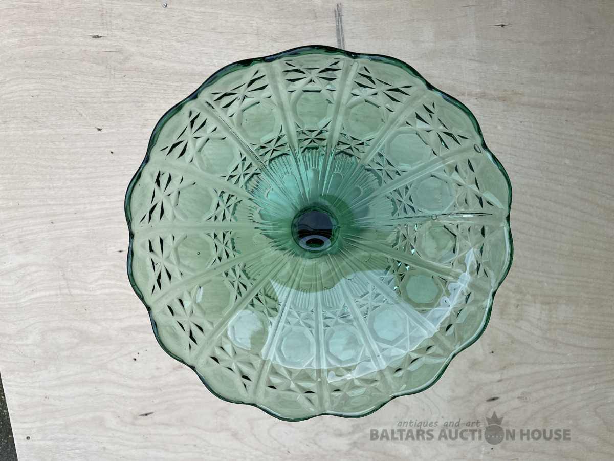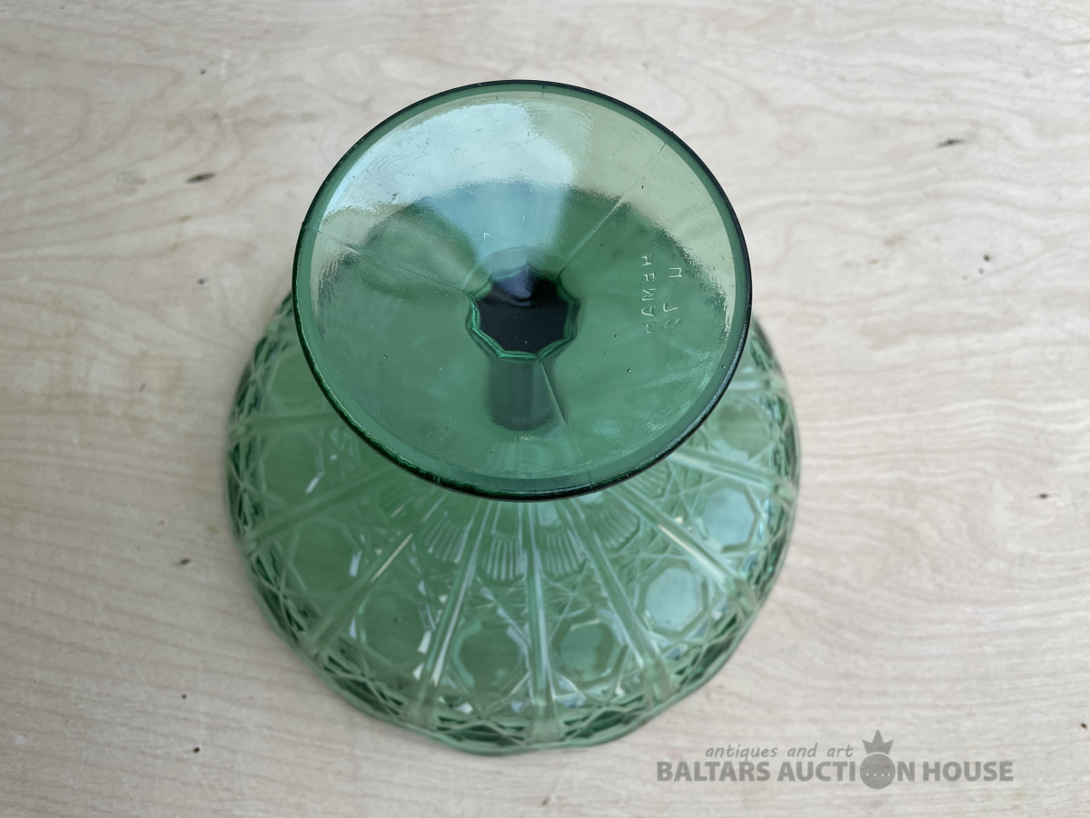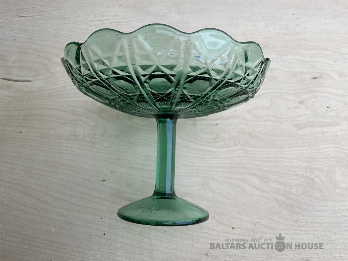 Stikla konfekšu trauks, zaļš. D- 20,5 cm, h- 14,5 cm. Bez traumām