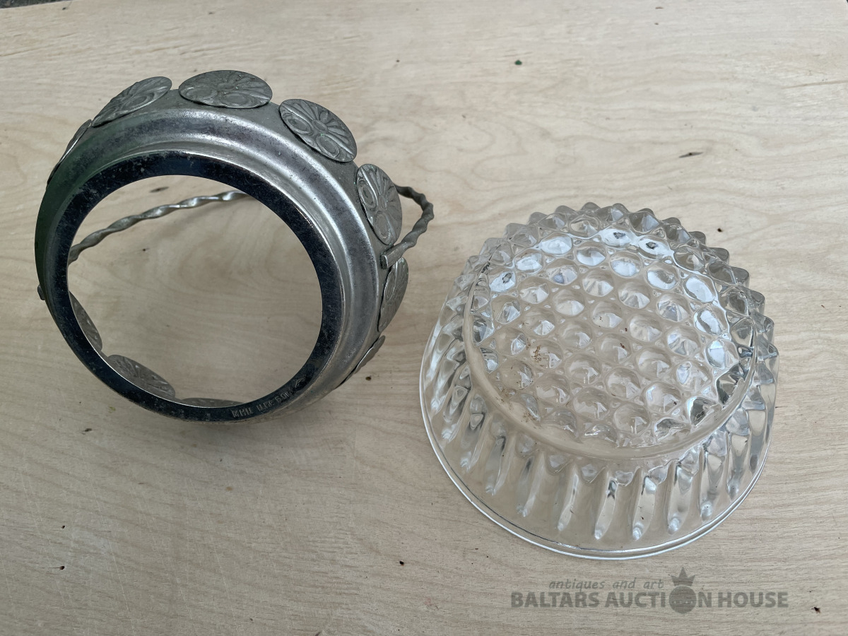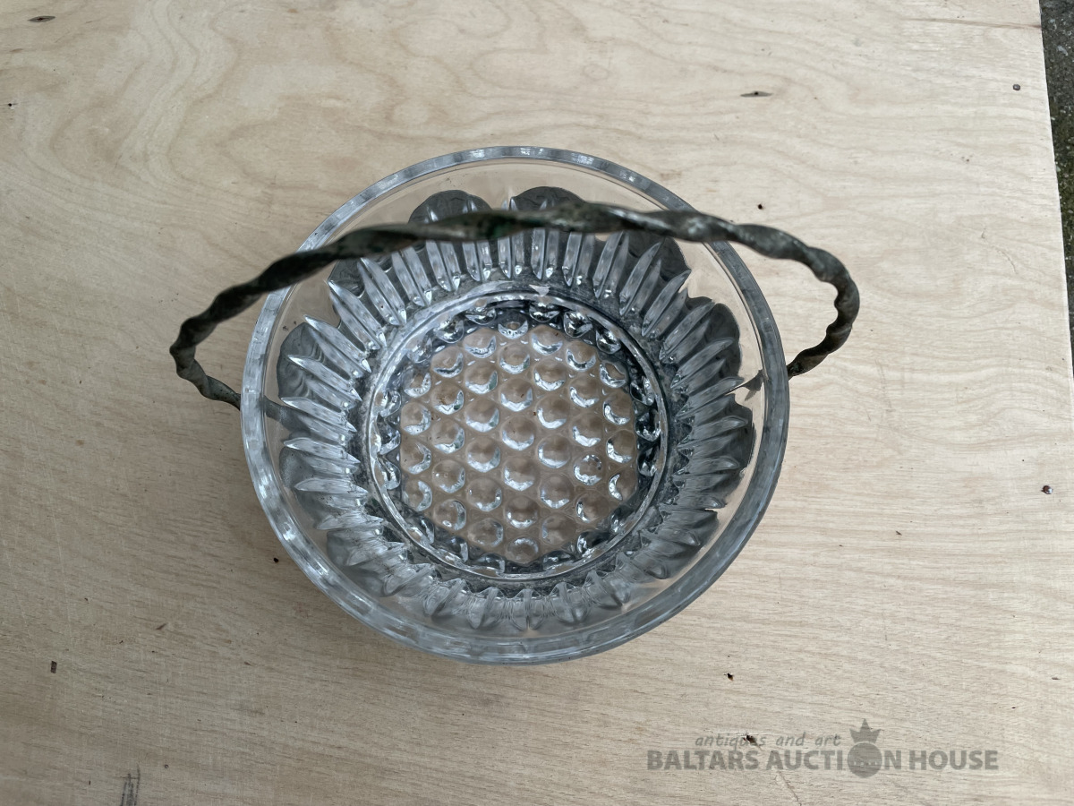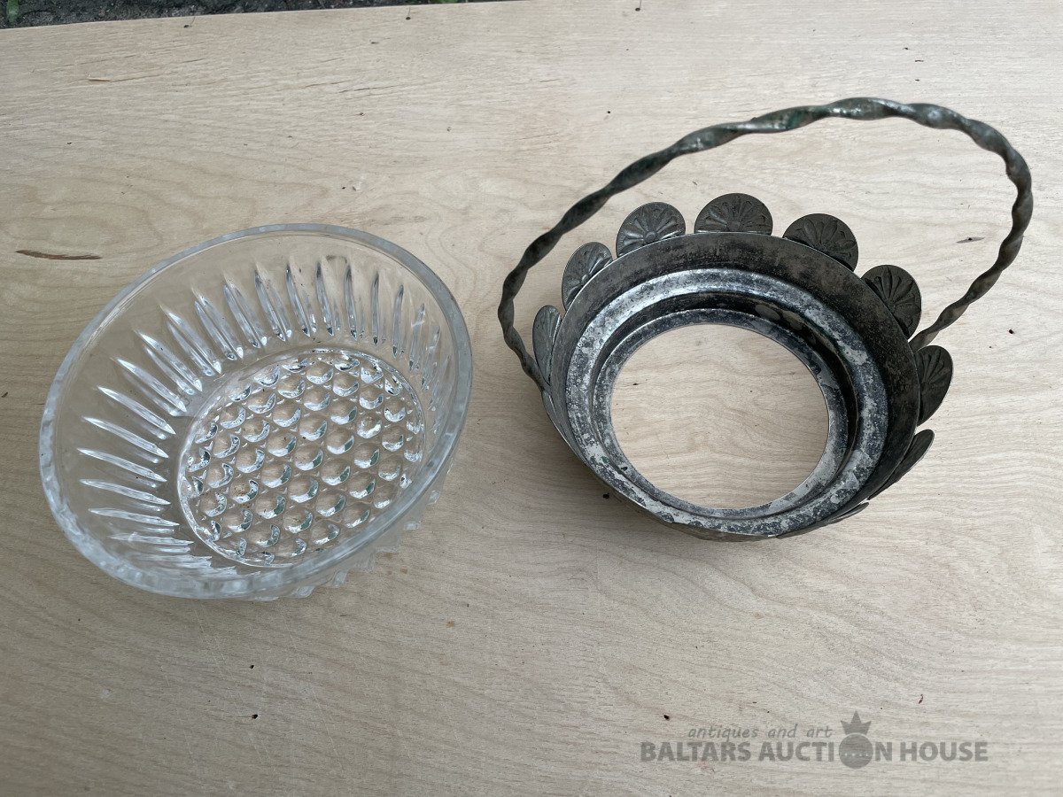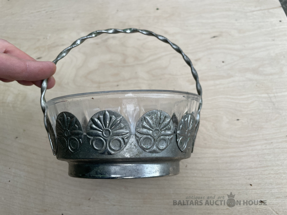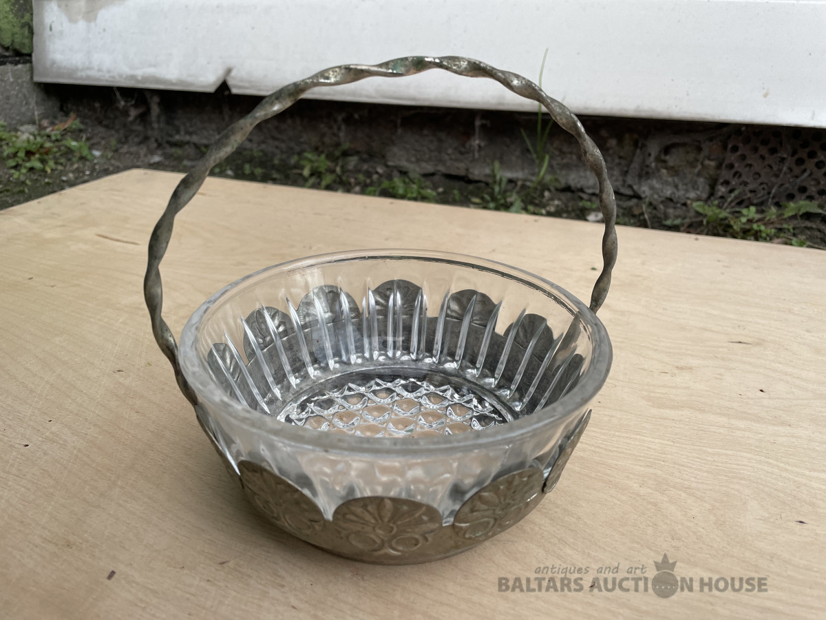 Stikla saldumu trauks metāla ietvarā. H- 18 cm, d- 15,1 cm. Bez traumām