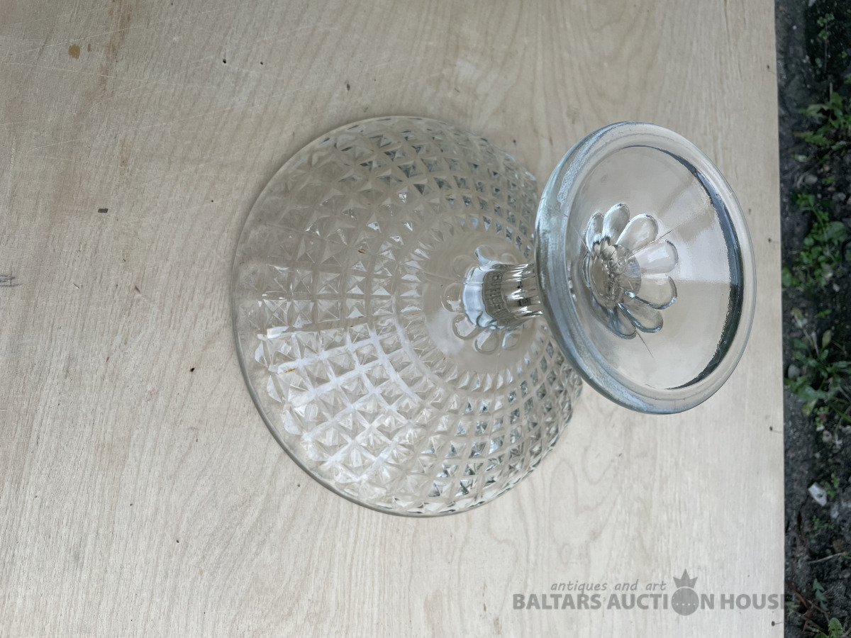 Stikla konfekšu trauks. H- 15,5 cm, d- 20,9 cm. Bez traumām