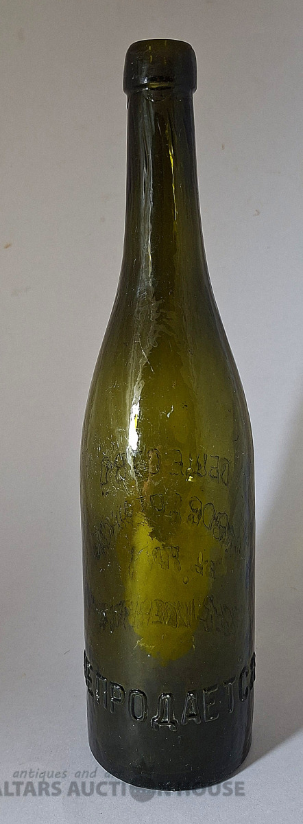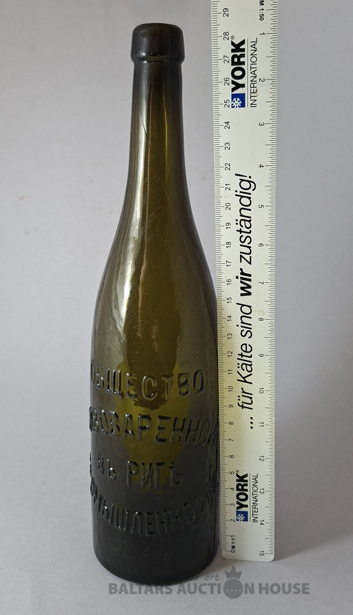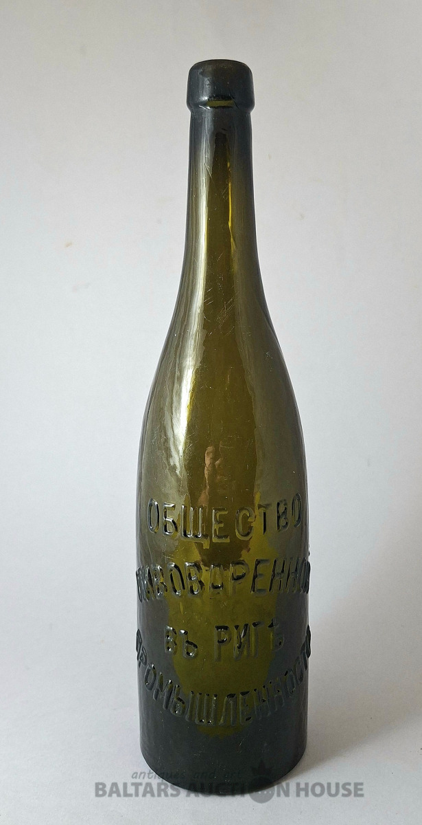 pudele, Alus ražotāju industrijas sabiedrība Rīgā, stikls, Krievijas impērija, 20. gs. sākums, augstums 29 cm.Bez plaisām.