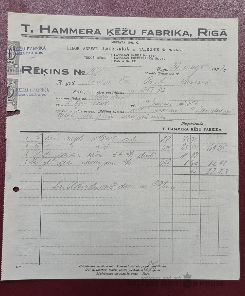 Rēķins. T. Hammera ķēžu fabrika. Rīgā, 1937g.
