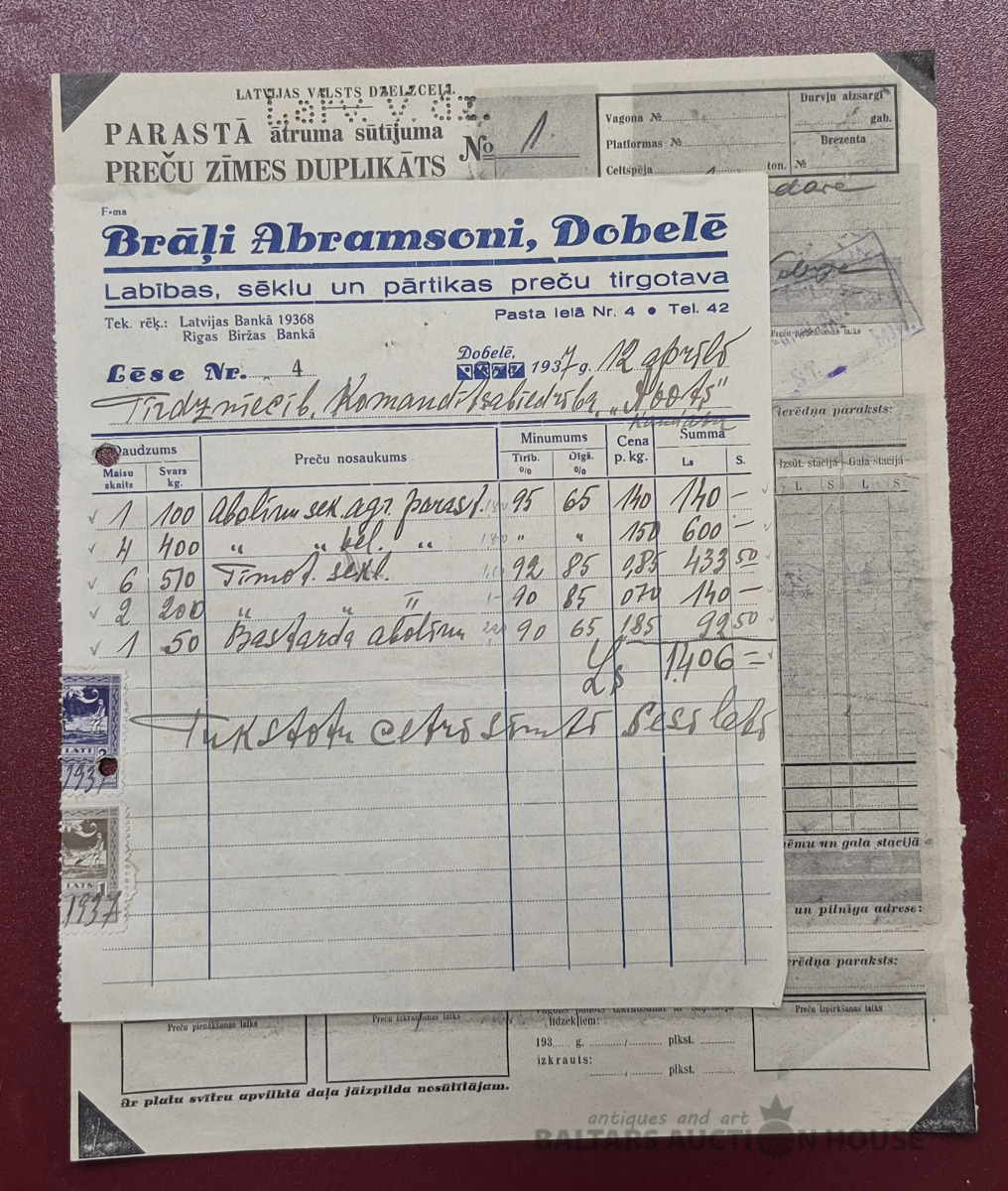 Lēse. Labības, sēklu un pārtikas preču tirgotava "Brāļi Abramsoni" Rīgā, 1937g.