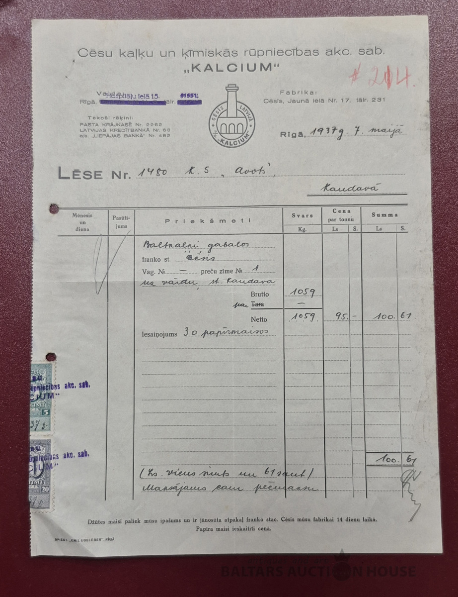 Lēse. Cēsu kaļķu un ķīmiskās rūpniecības akc.sab. "Kalciums", 1937g.