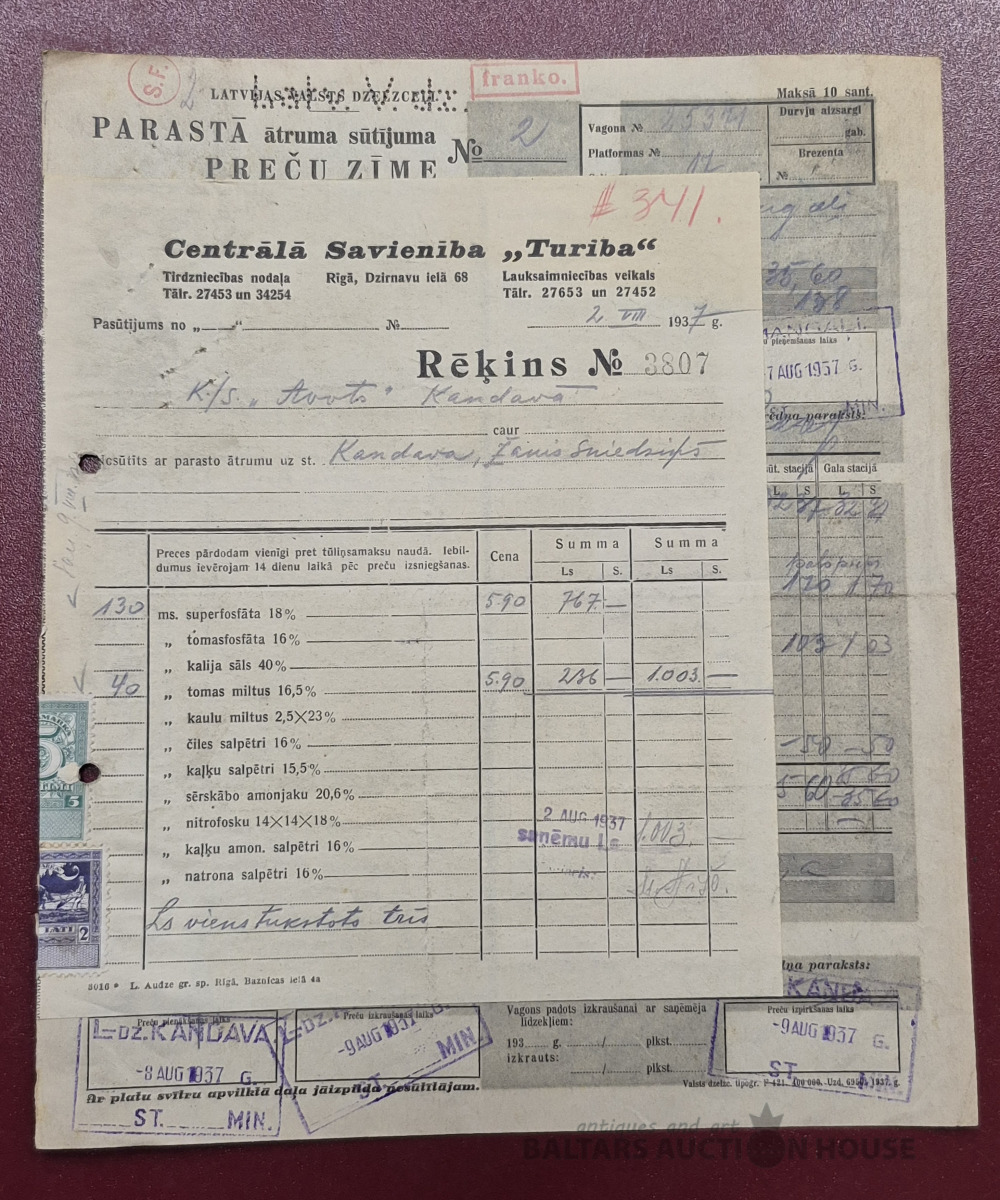 Rēķins. Lauksaimniecības veikals, 1937g.