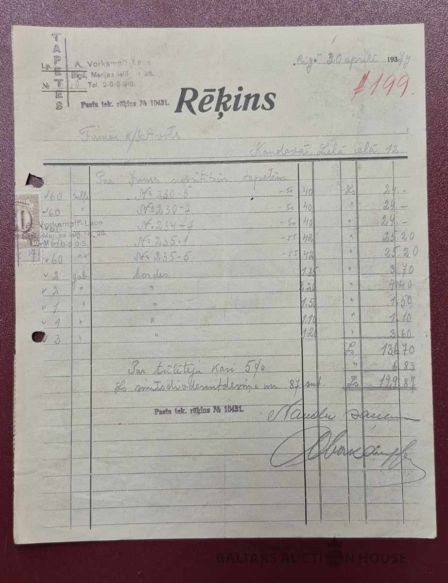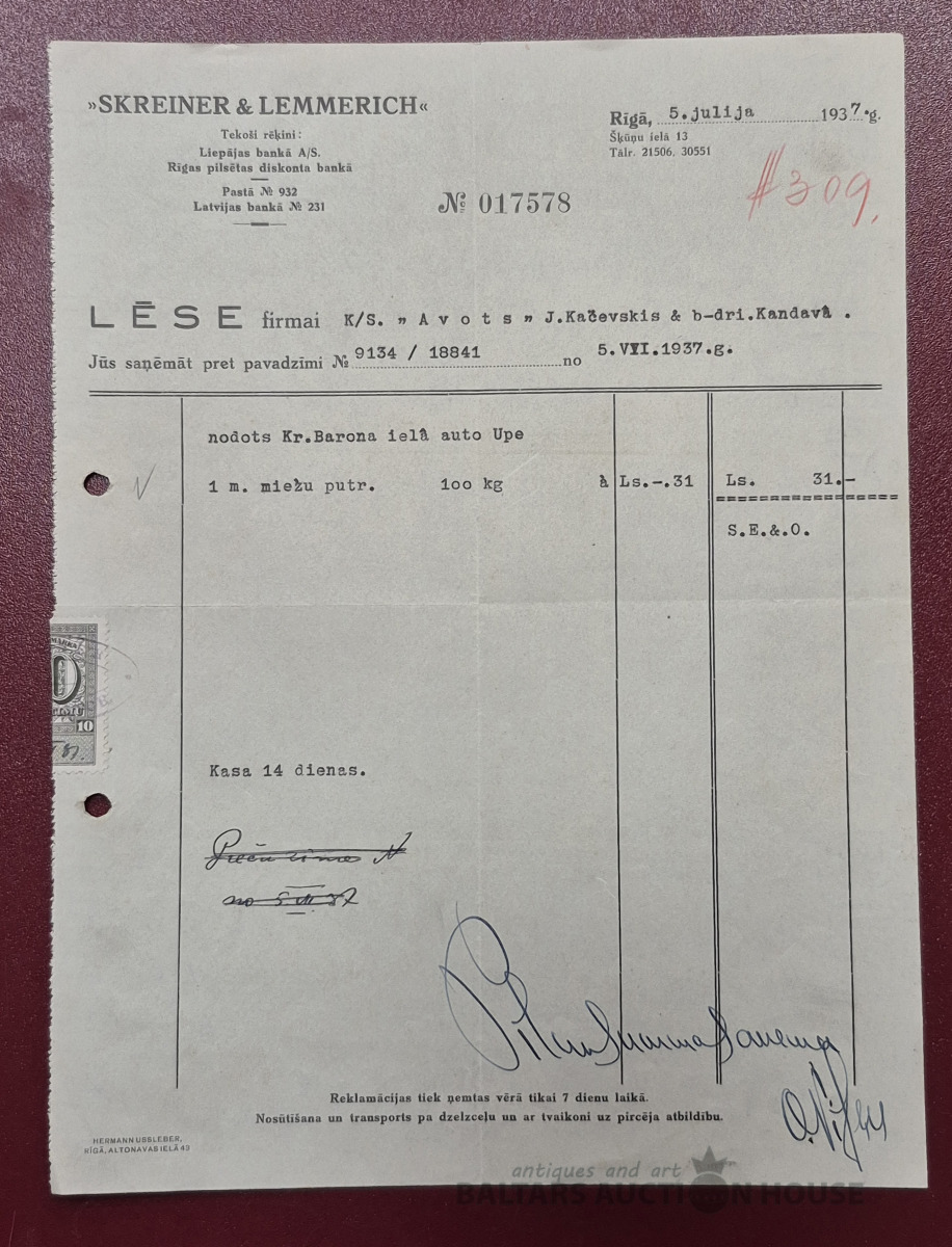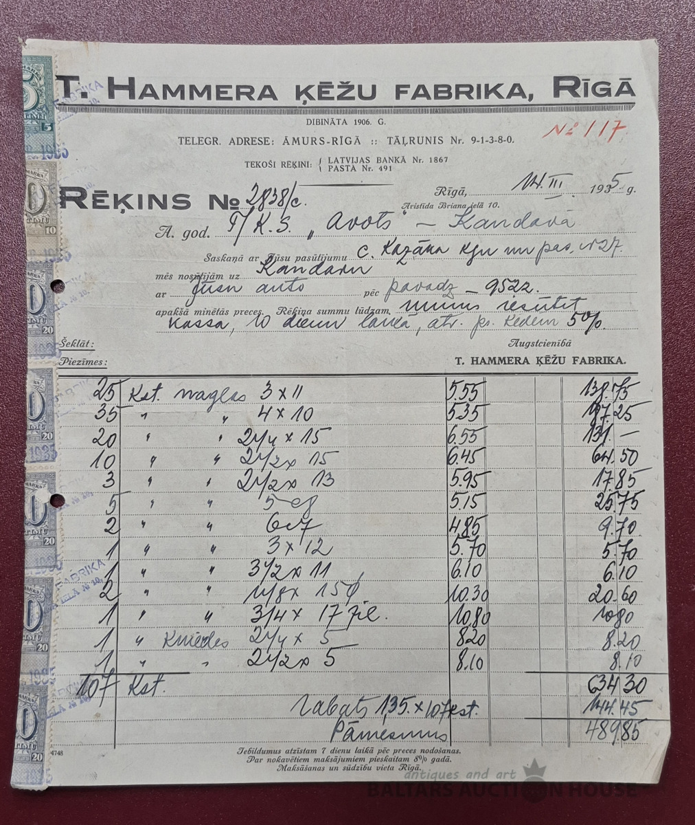 Rēķins. T. Hammera ķēžu fabrika, Rīgā 1935g.