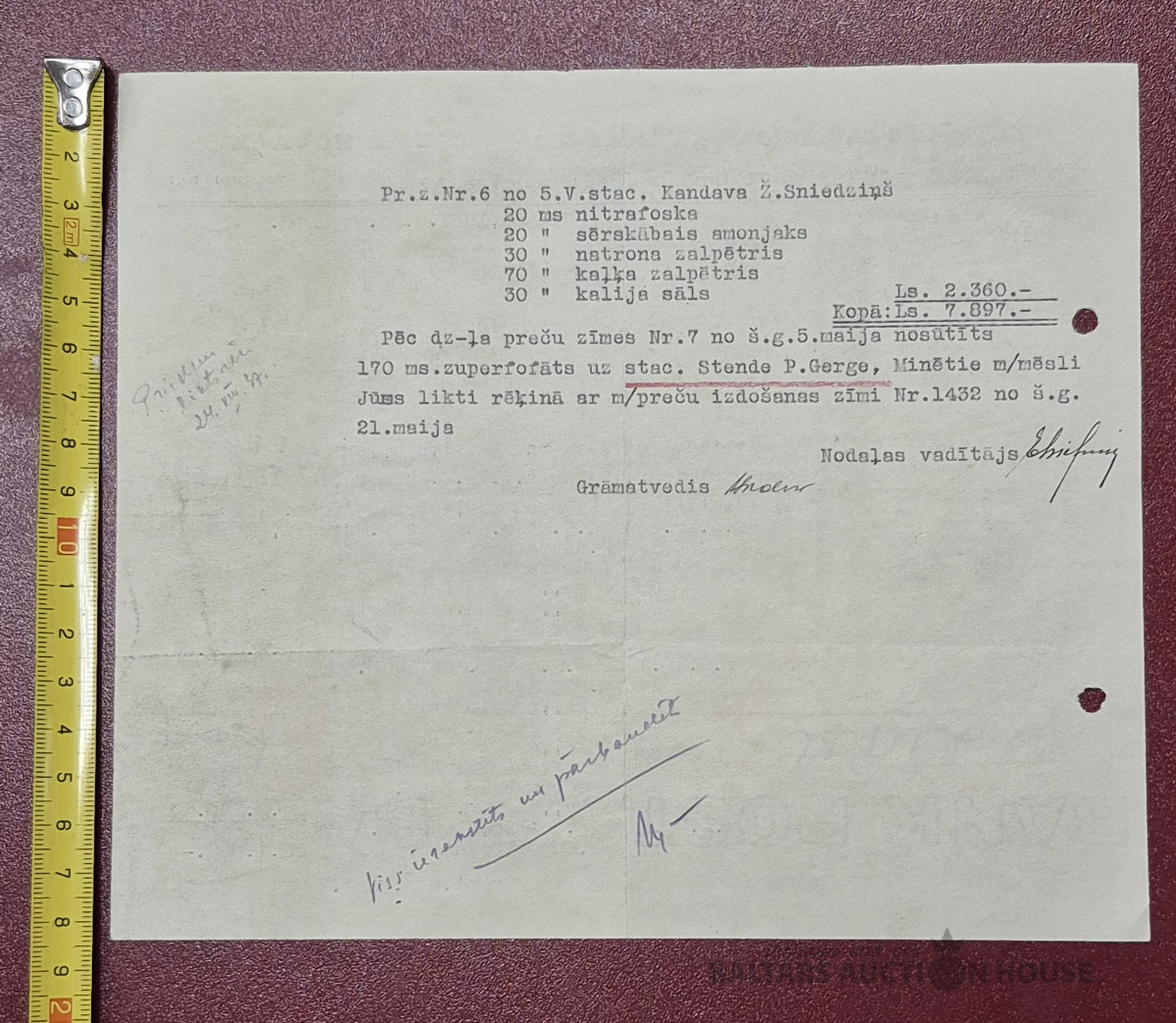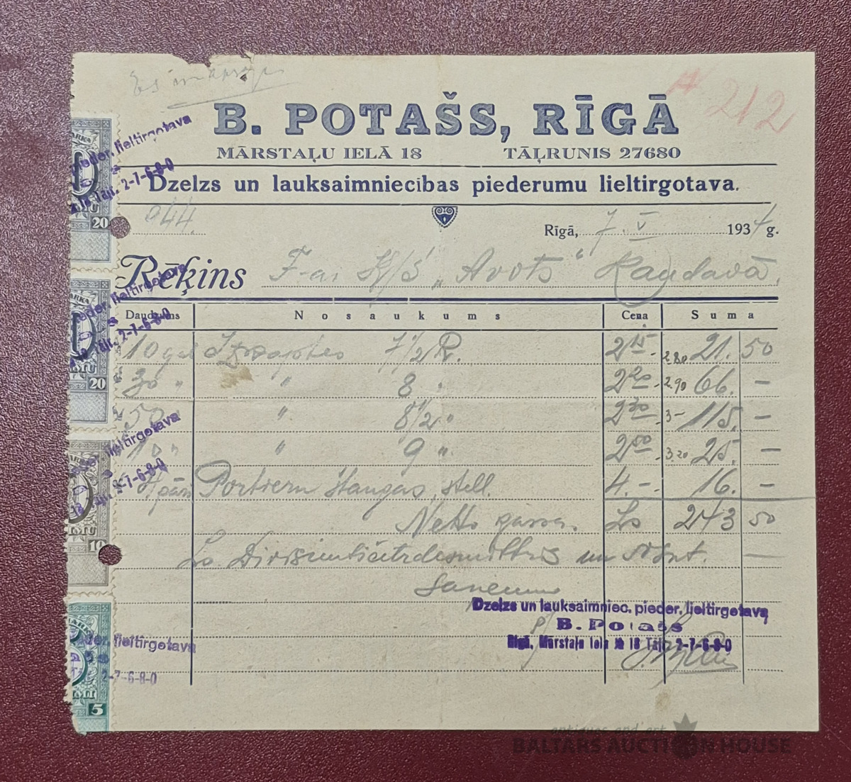 Rēķins. Rūpn.hēm.ražm"F. Bērziņš", 1935g.
