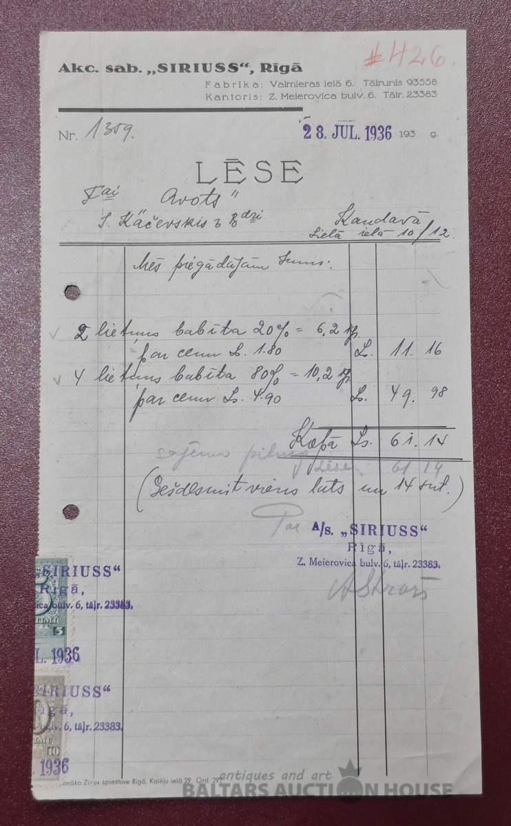 Lēse. A/S" Sirius", Rīgā 1936g.