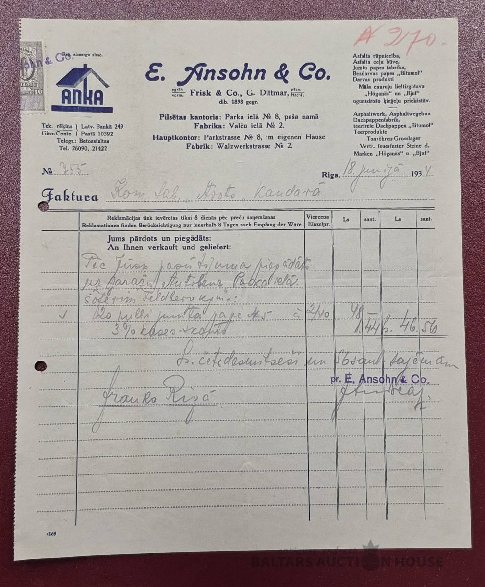 Asfalta rūpniecība "E. Ansohn", 1934g.