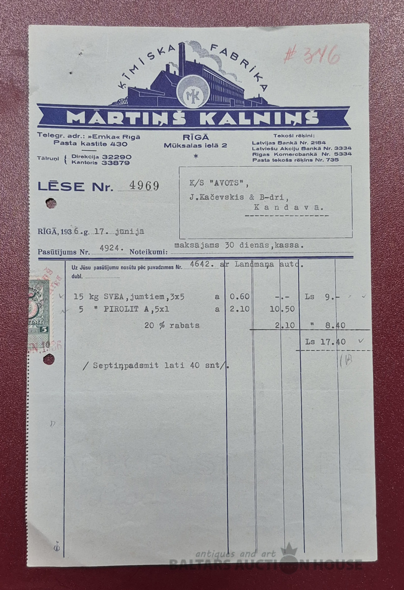 Lēse. Ķīmiskā fabrika "Mārtiņš Kalniņš", 1936g.