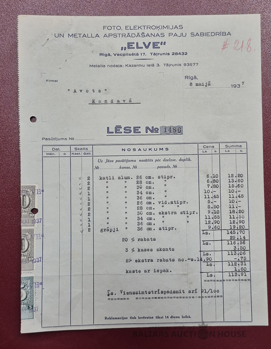 Lēse. Trauku un saimniecības piederumu aģentūra "L. Meiselis", 1937g.