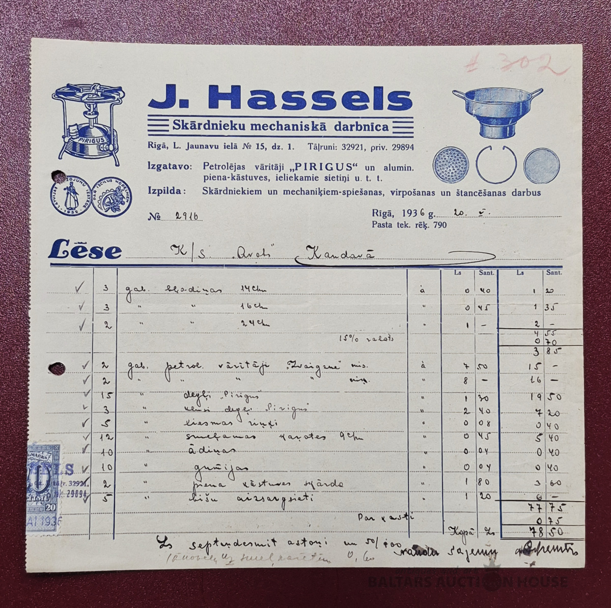 Lēse. Skārdnieku mehāniskā darbnīca "J. Hassels", 1936g.