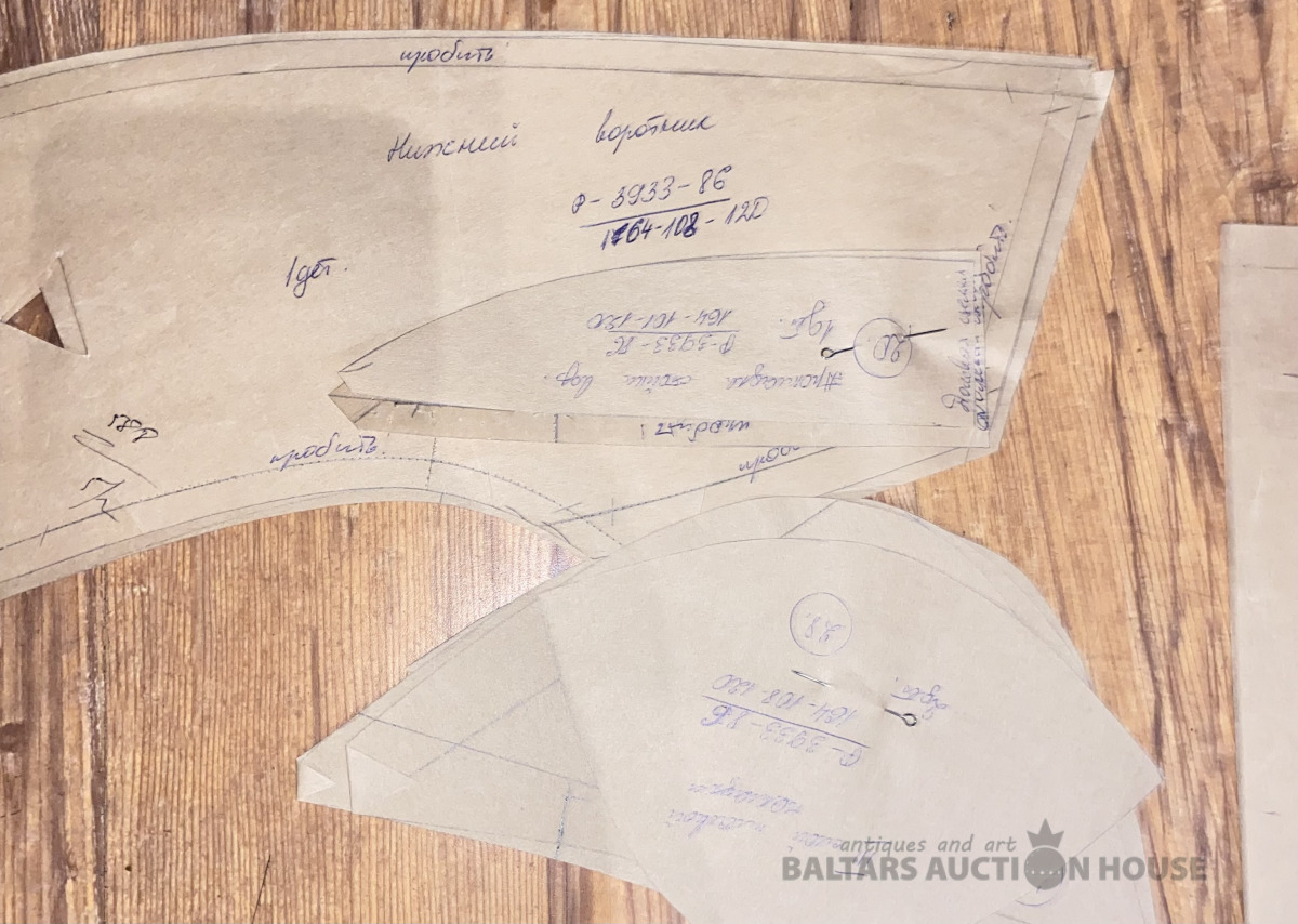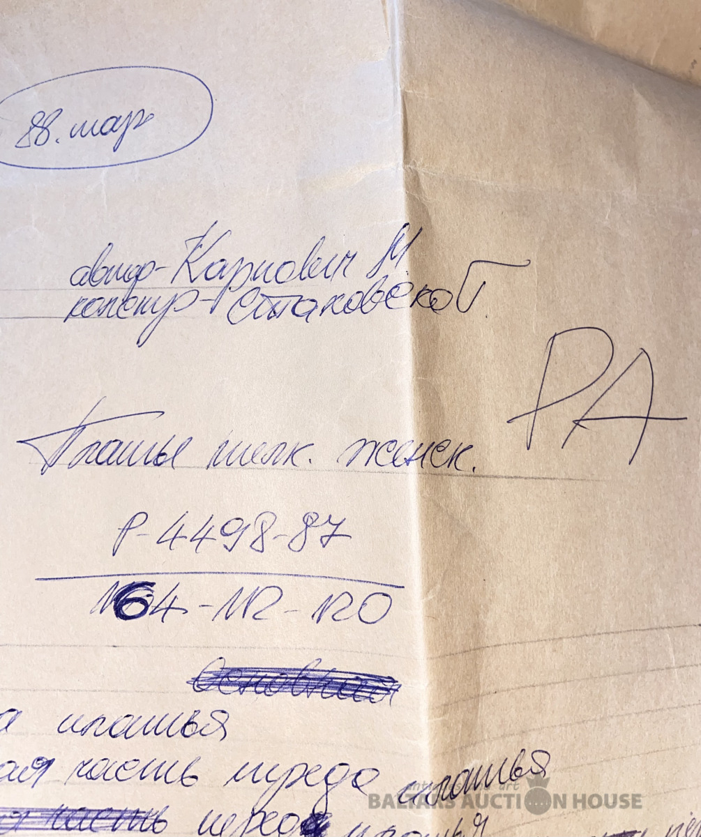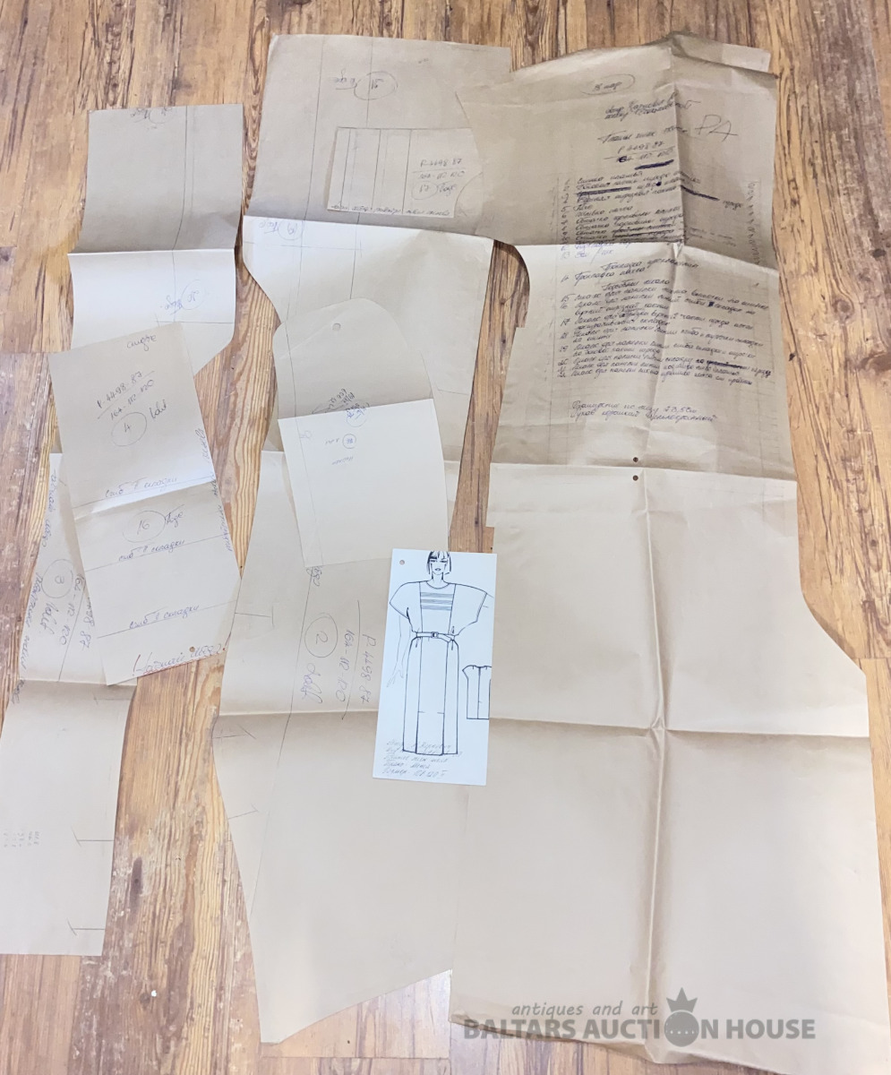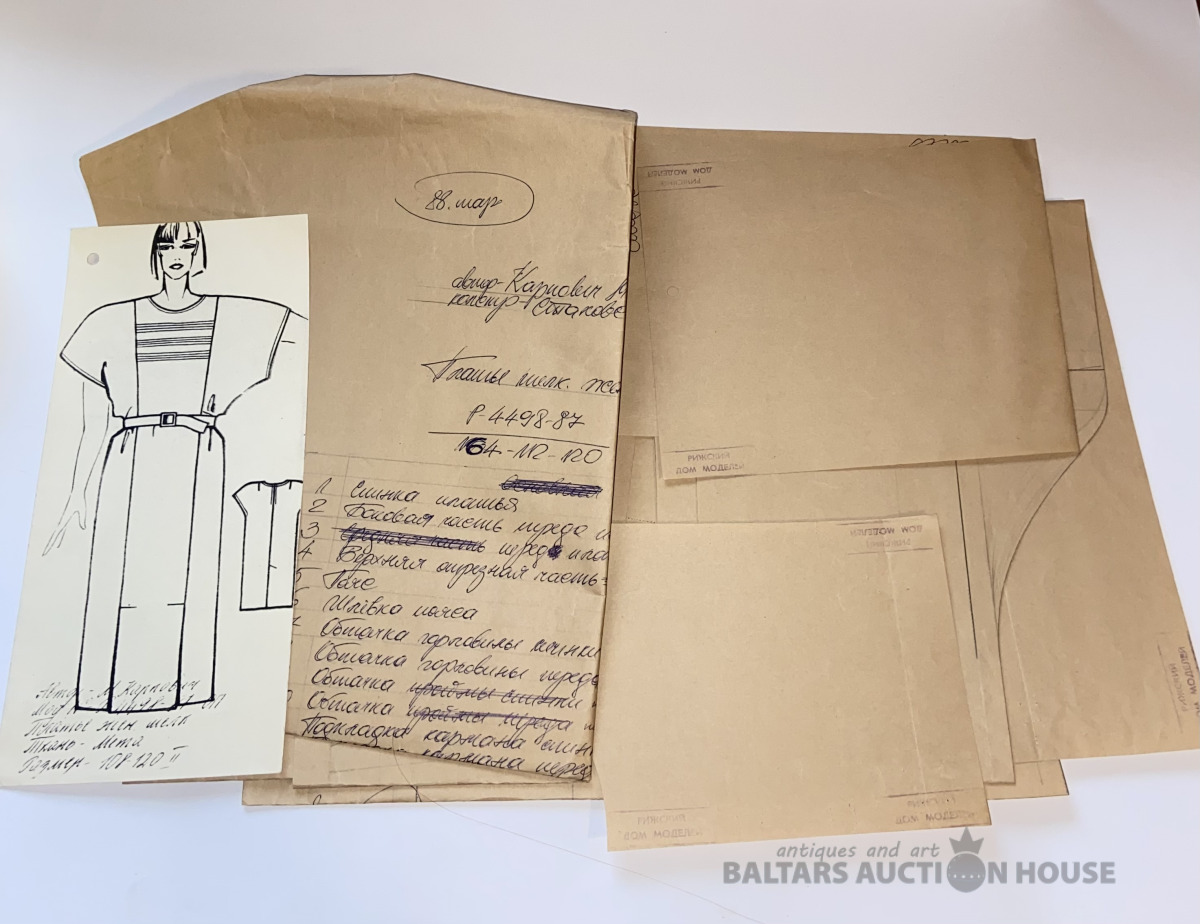 Modeļa skice: sieviešu zīda kleita, 1987. gads, Rīgas Modes nams (Nav zināms, vai visi skices detaļas ir klāt )