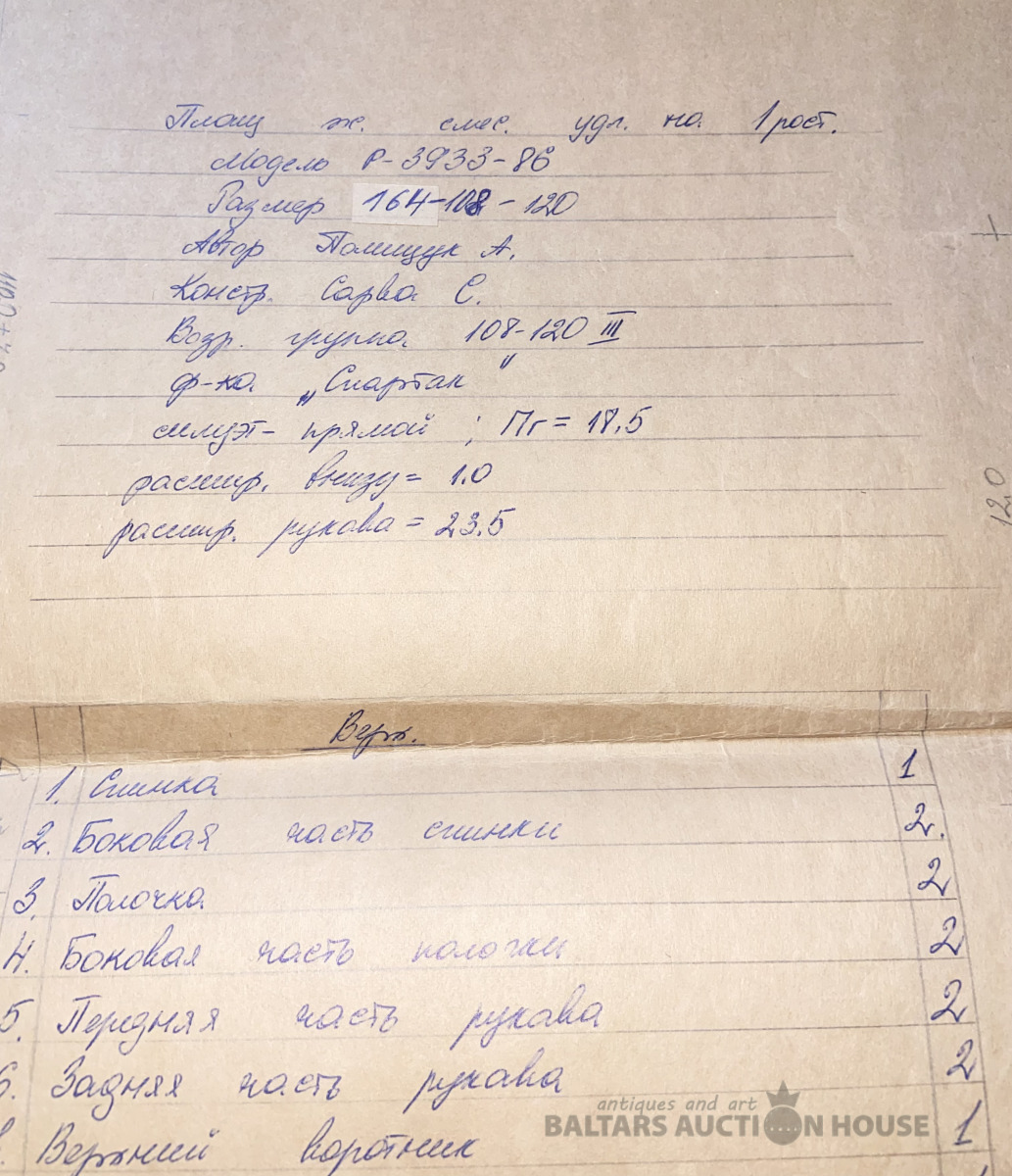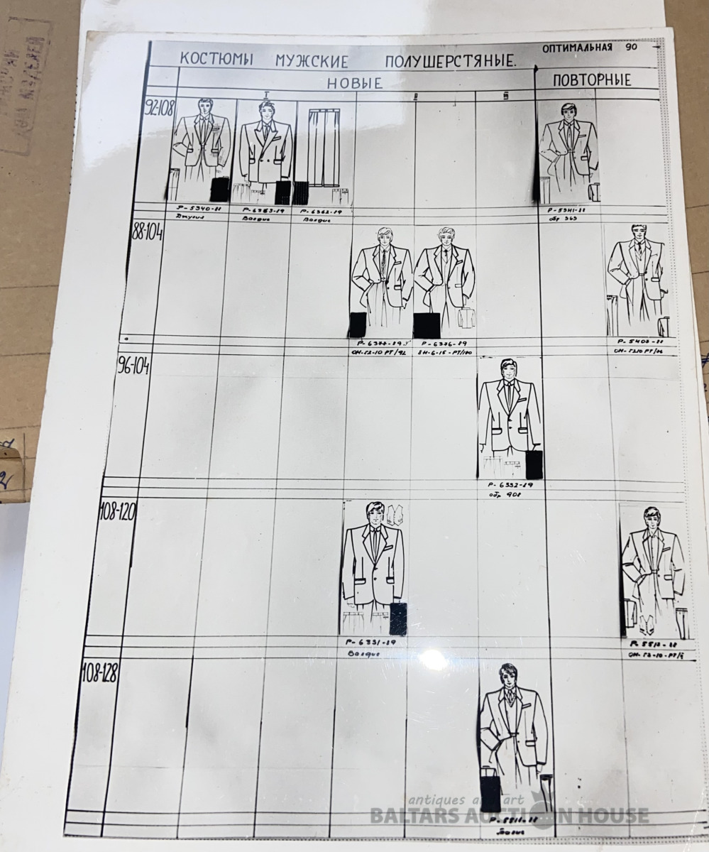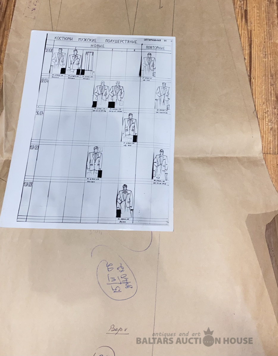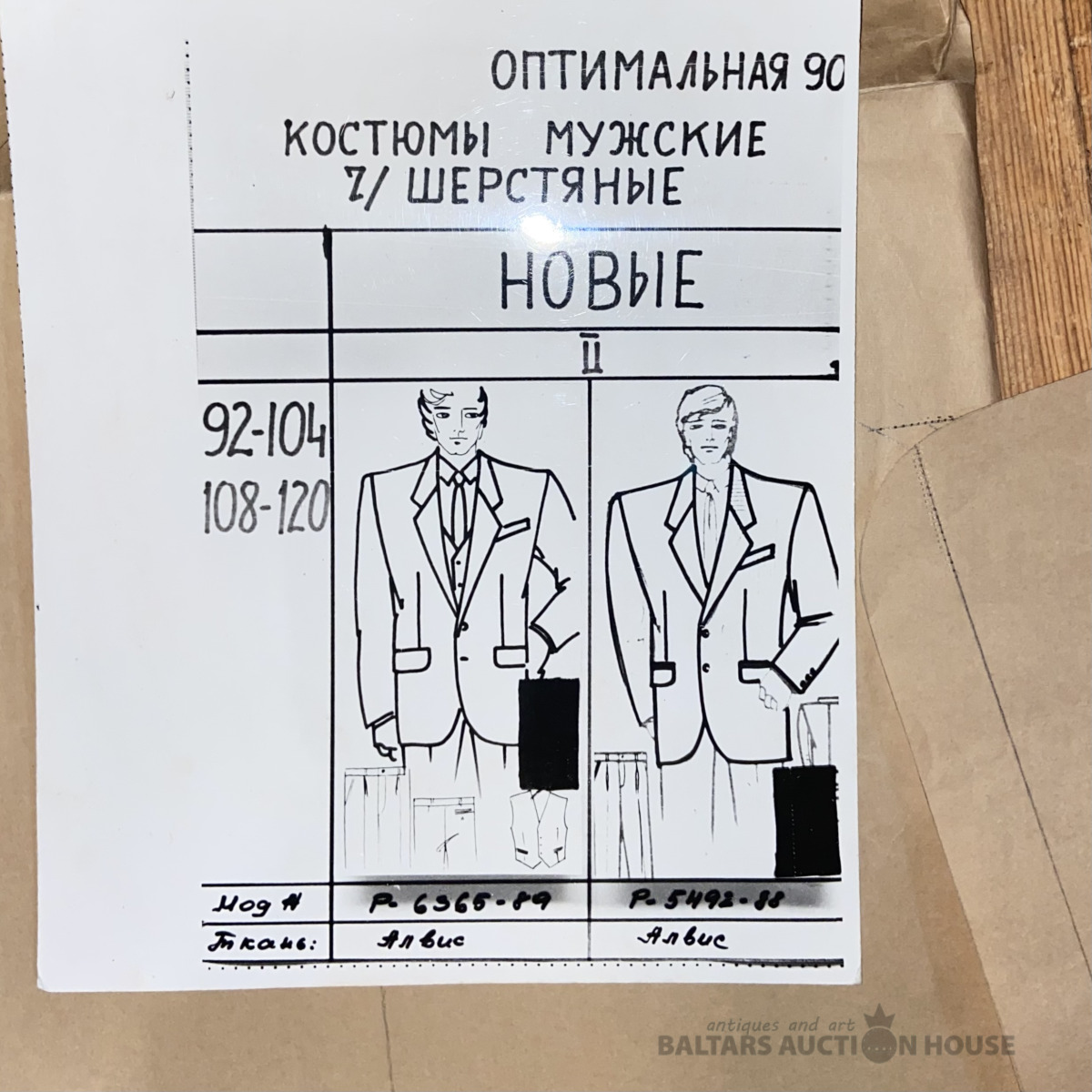 Modeļa skice: vīriešu vilnas uzvalks 1990.gads. Autors: Korns,konstruktors: Strazdiņa. Trūkst skices detaļas.