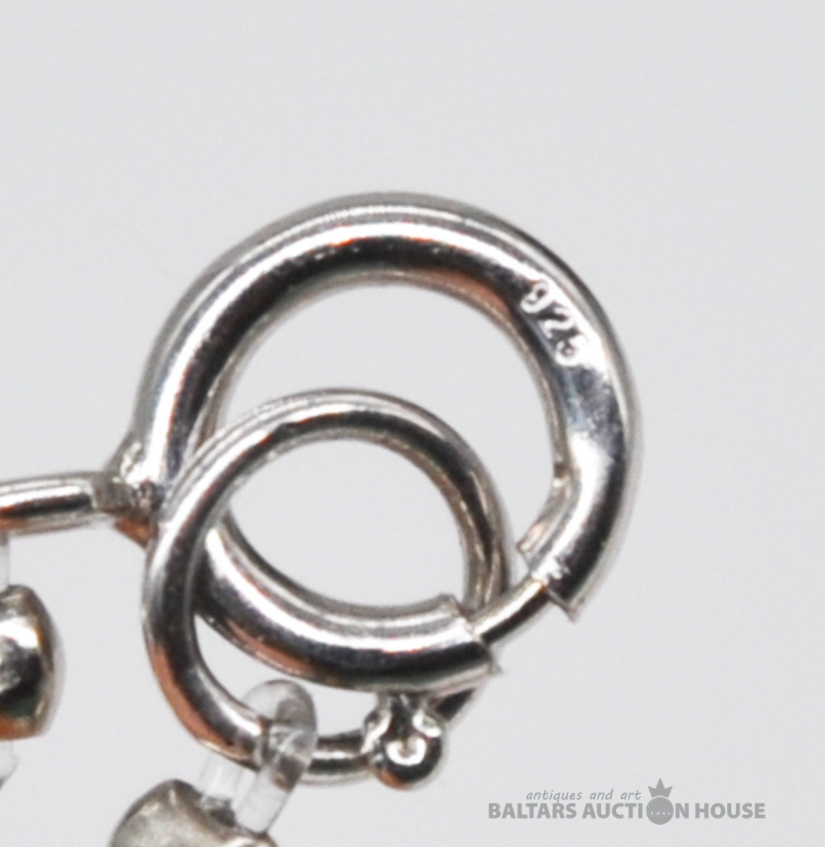 Kaklarota. Zila tirkīza pērlītes, dabīgās pērles, Sudrabs 925 prove.