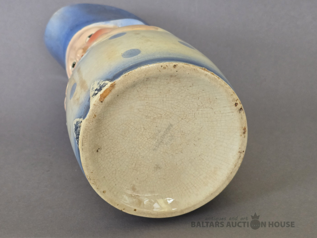 krūka, "Annele", fajanss, M.S. Kuzņecova rūpnīca, Rīga (Latvija), 1920-1933 g., h 22.5 cm, ikdienas lietošanas pēdas, plaisa.