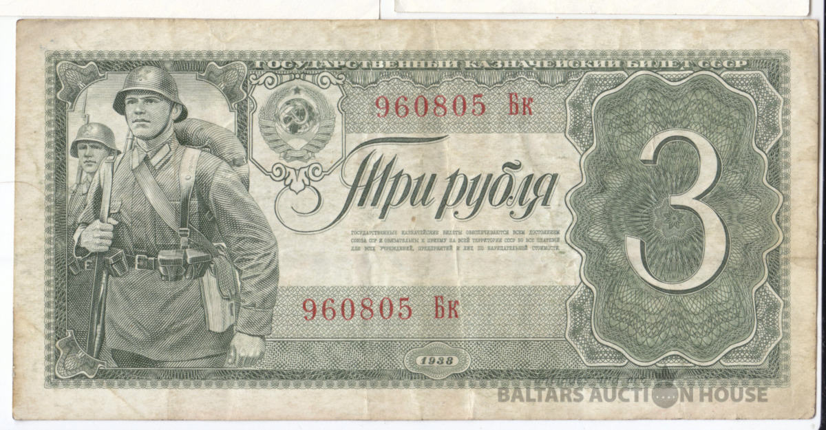Banknote, Krievija/Russia, 3 Rubļi 1938 aXF