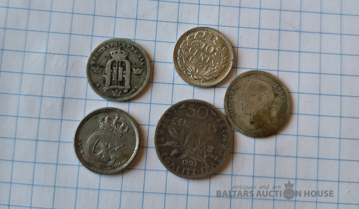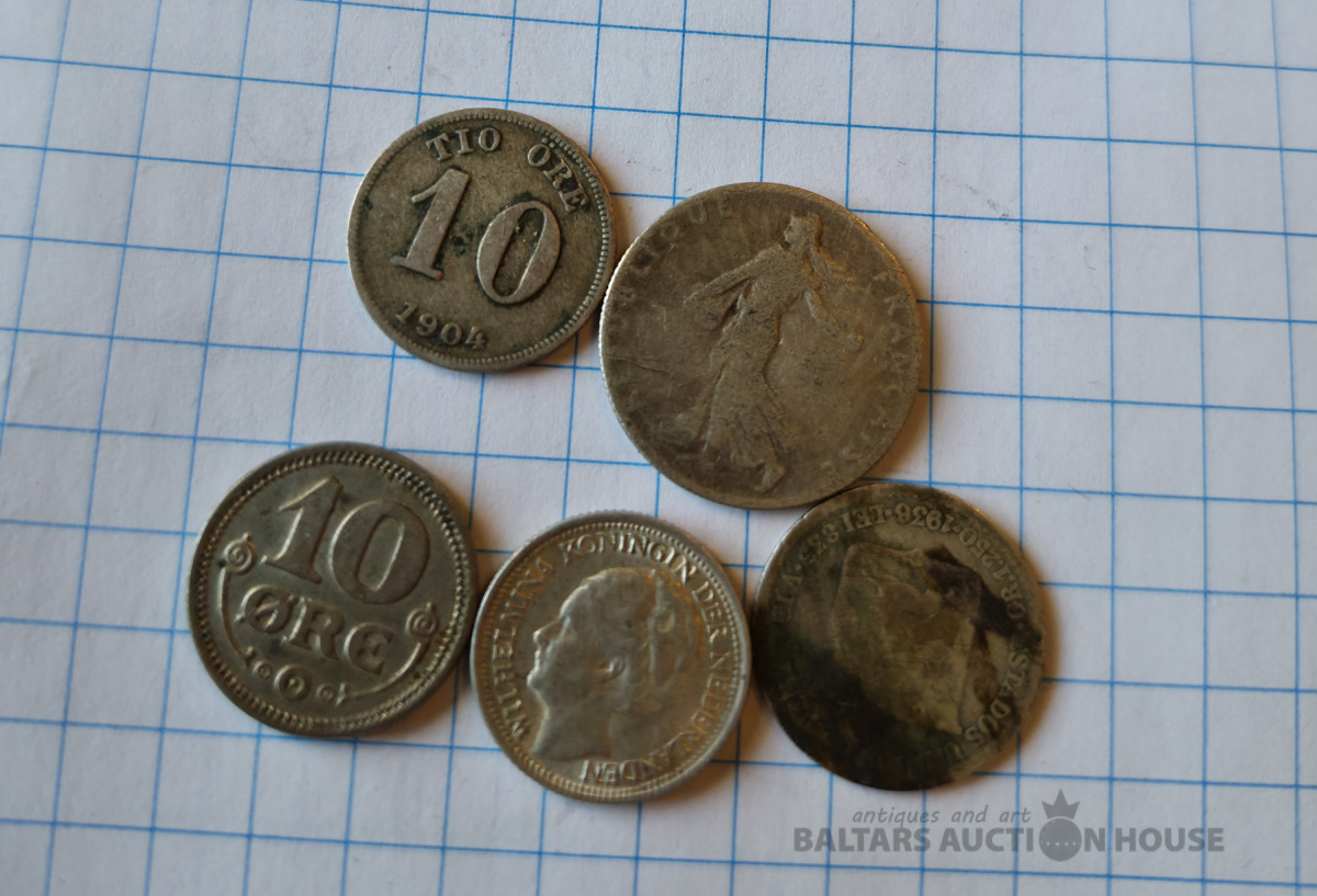 Dažādu valstu vecas sudraba monētas . 7,78 gr.