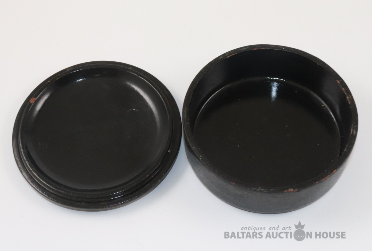 Lādīte ar vāku. Koks, roku gleznojums. h=4,5 cm, d=13 cm