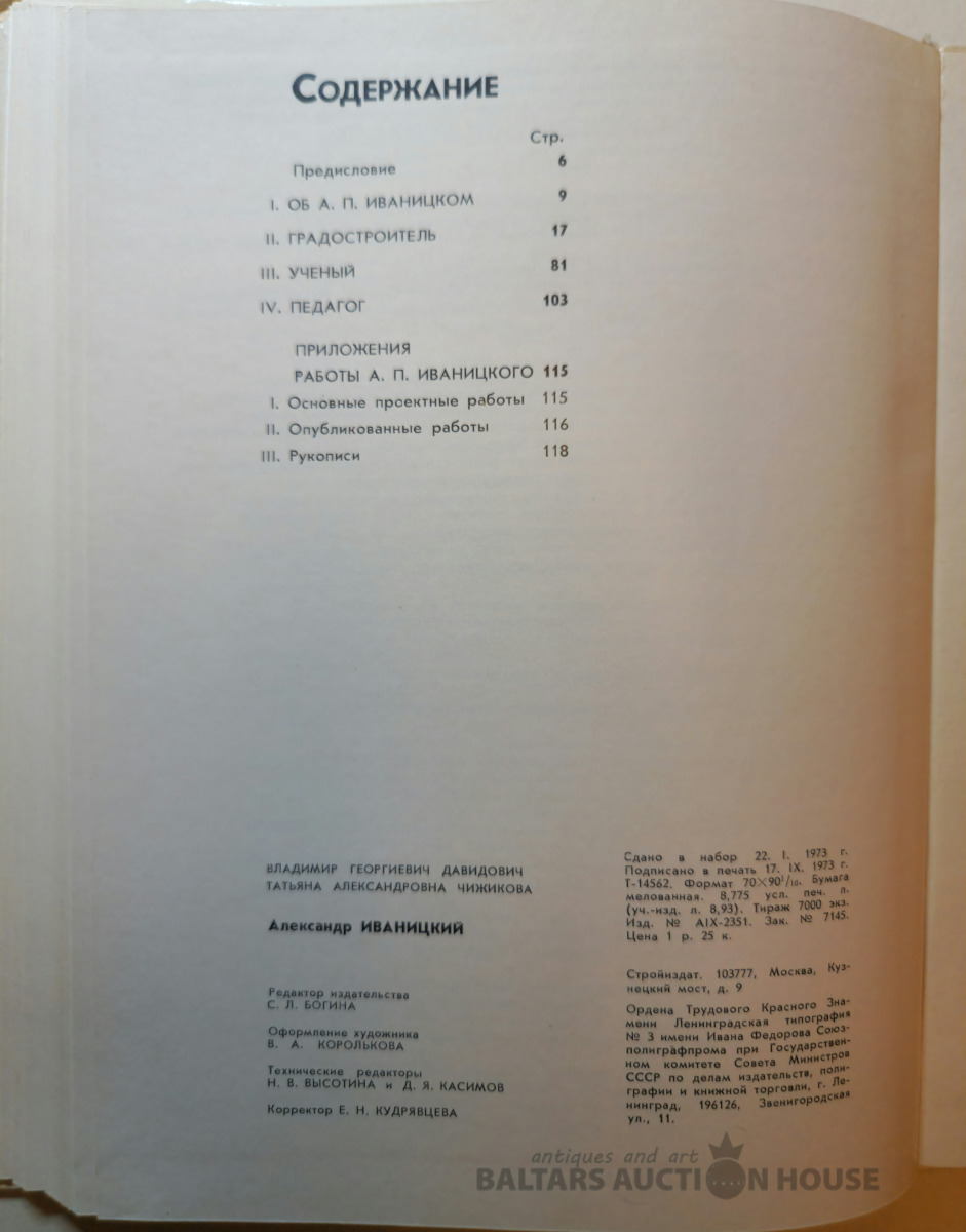 V. G. Davidovič, T. A. Čižikova "Aleksandrs Ivanickijs". Maskavā 1973.g.