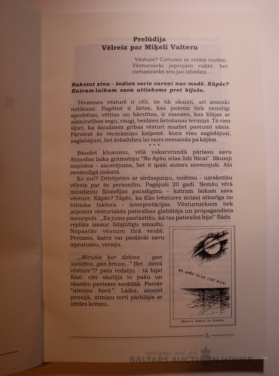 Rihards Rubīns '''Vientuļnieks, Kāds atkal neiet kopsolī ar laikabiedriem, Miķelis Valters un Liepāja'', Grāmatai maza tirāža.