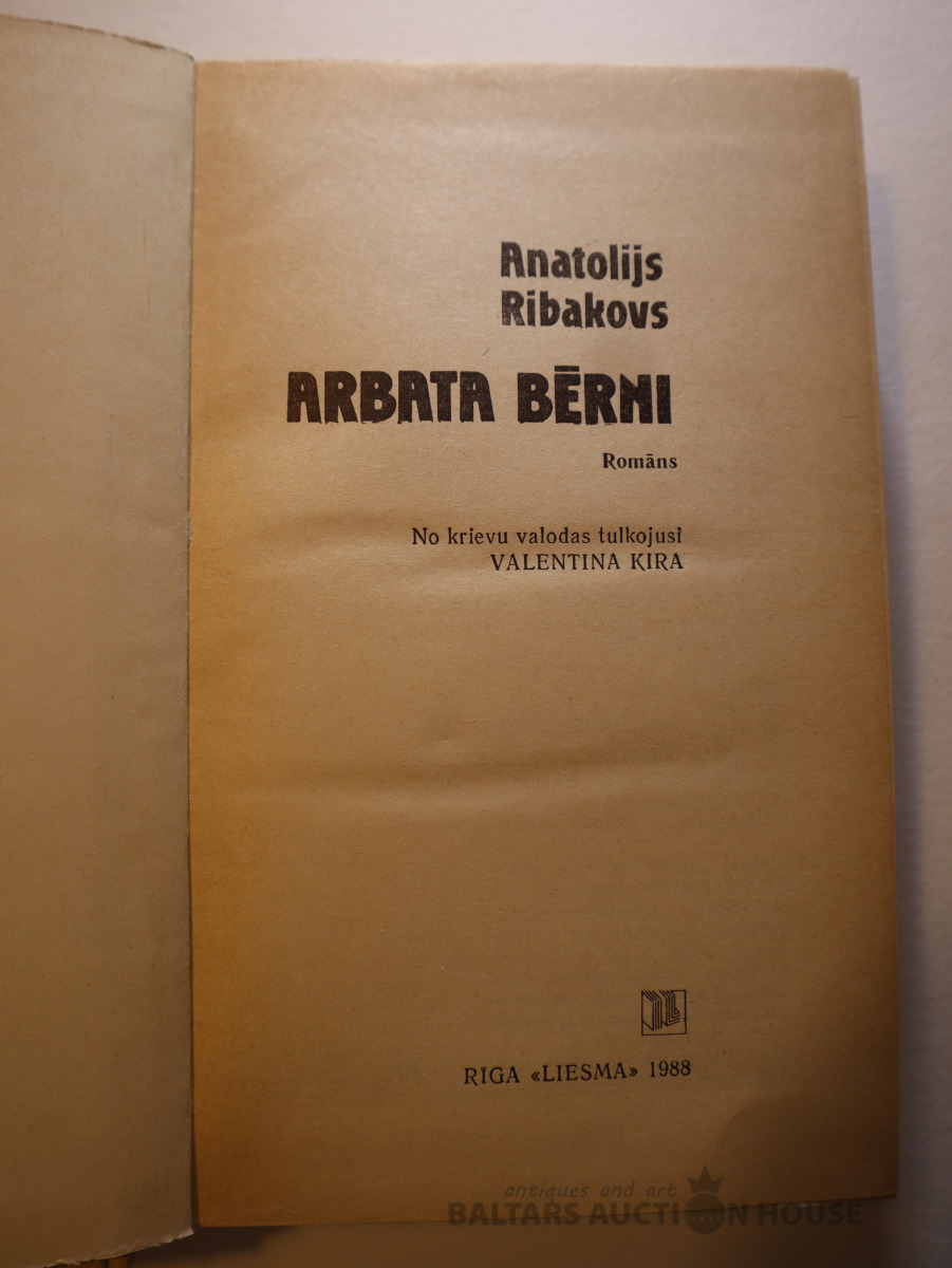 Anatolijs Ribakovs ''Arbata bērni'', romāns, 1988. gads
