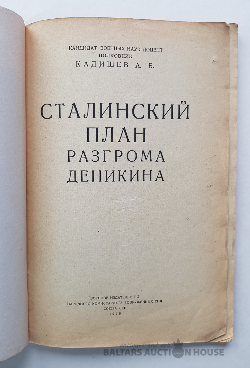 "Staļina plāns Deņikina sagrāvei". А.Б. Кадишев "Сталинский план разгрома Деникина", 1946. Bez vākiem.