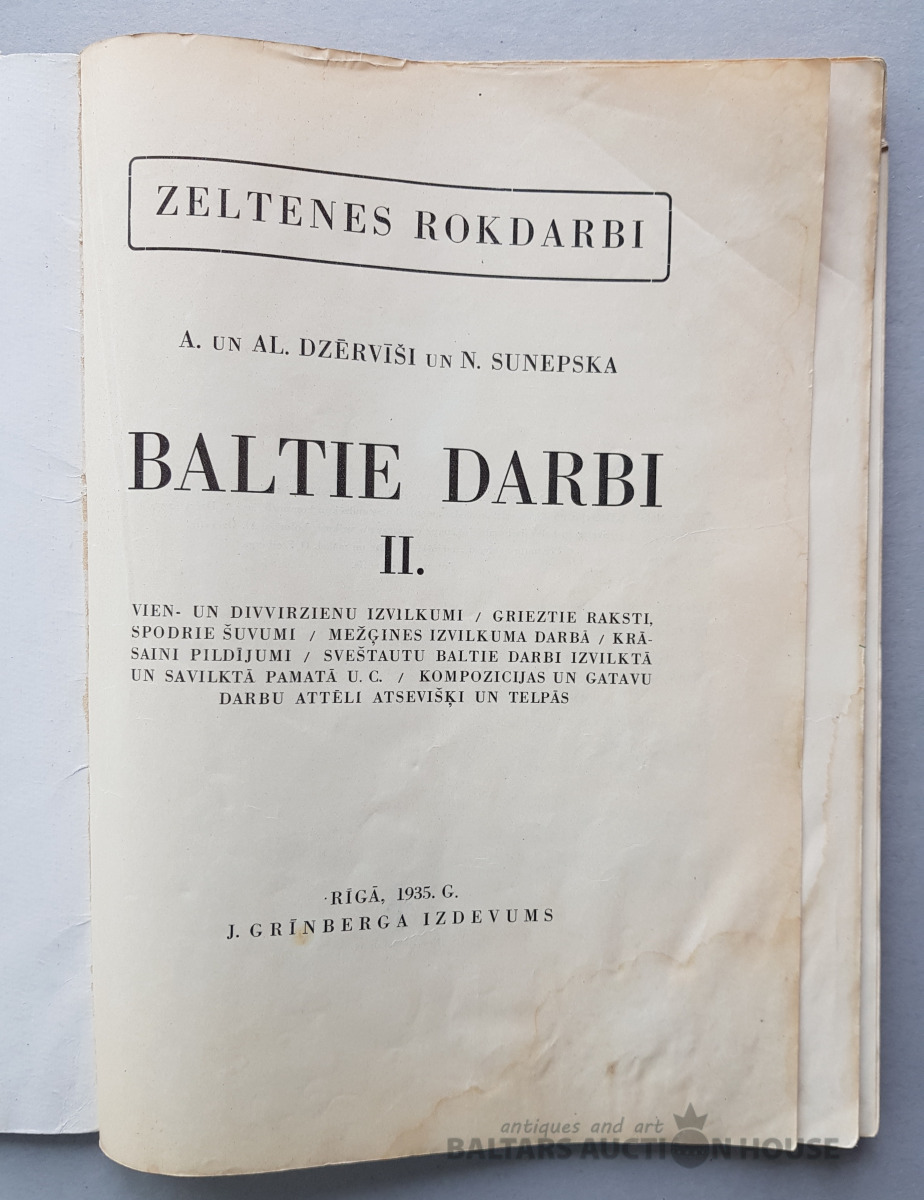 A. un Al. Dzērvīši un N. Sunepska "Zeltenes rokdarbi. BALTIE DARBI II", J. Grīnberga izdevums, 1935.