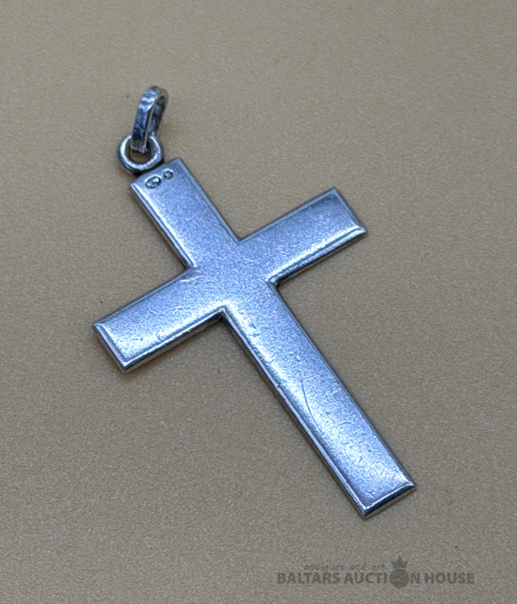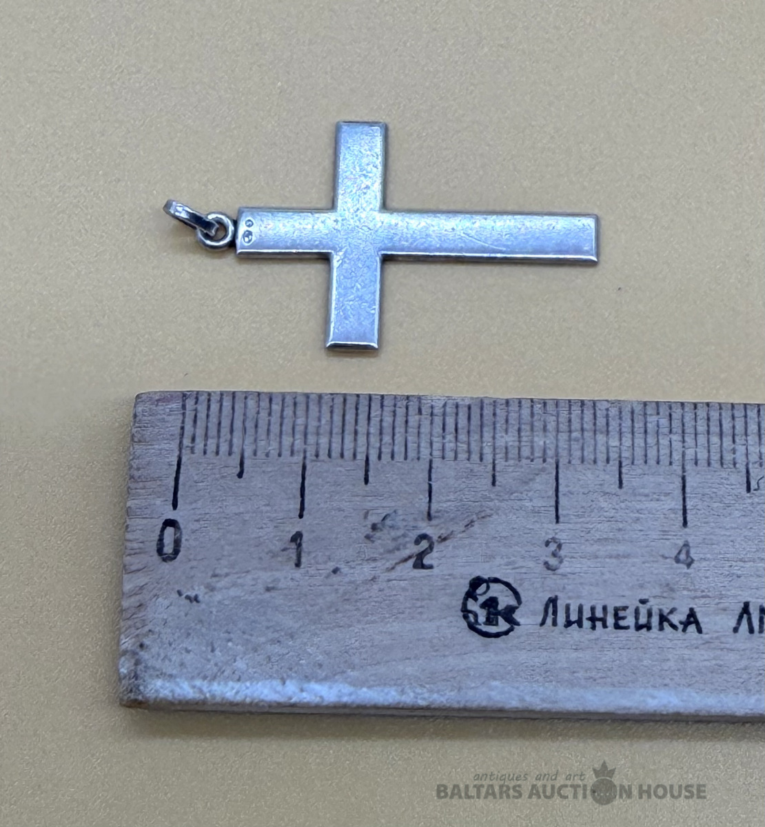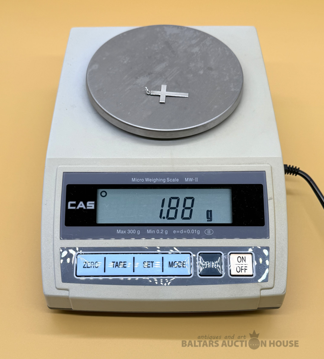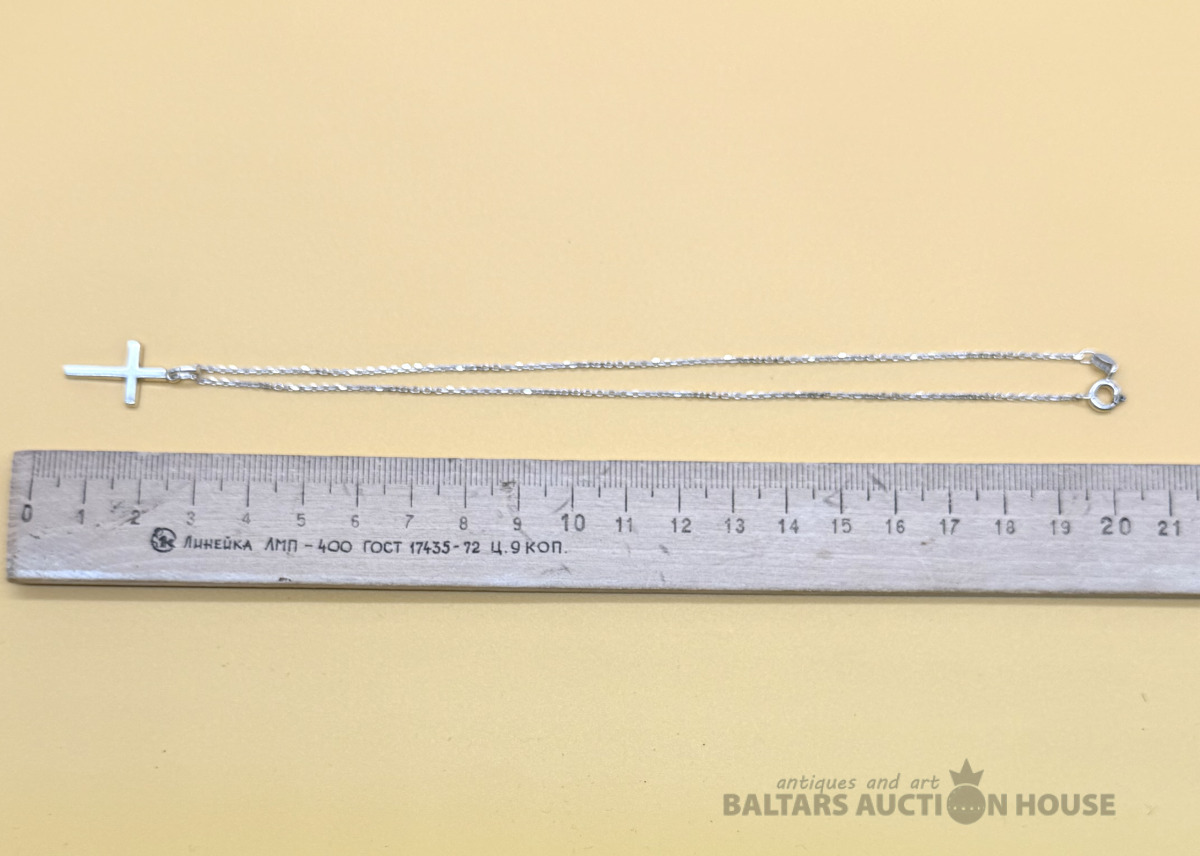 Sudraba ķēdīte ar krustiņu. Garums 36 cm. Svars 2.6 grami.