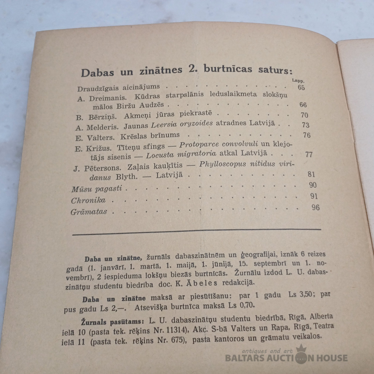 Daba un zinātne 1939/2 Satura rādītājs bildēs.