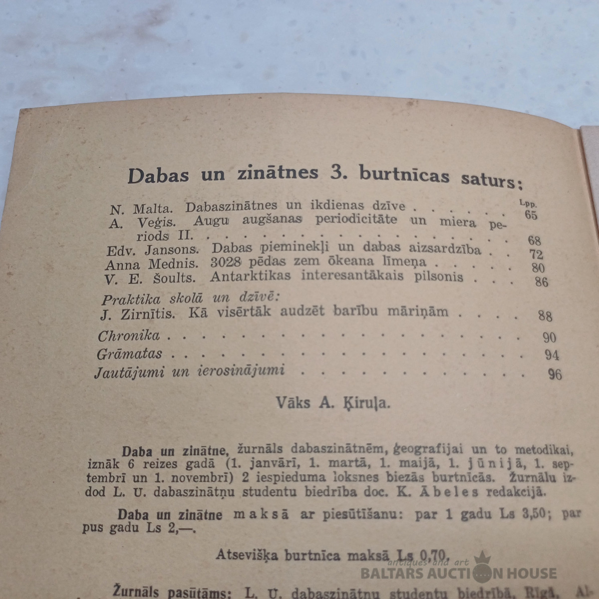 Daba un zinātne 1935/3 Satura rādītājs bildēs.