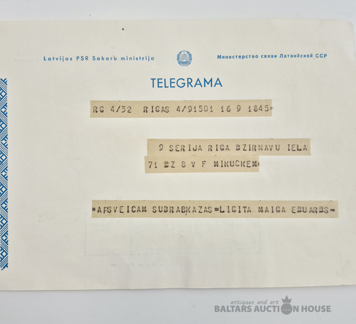 Latvijas PSR telegrama.