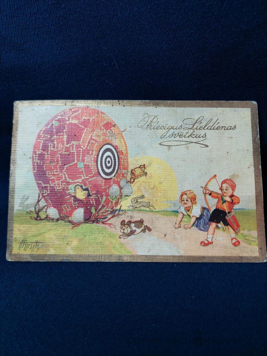 Pastkarte : ''Priecīgus Lieldienas svētkus. Apsitis izdevniecība Hermus slebera spiestuve Rīgā.