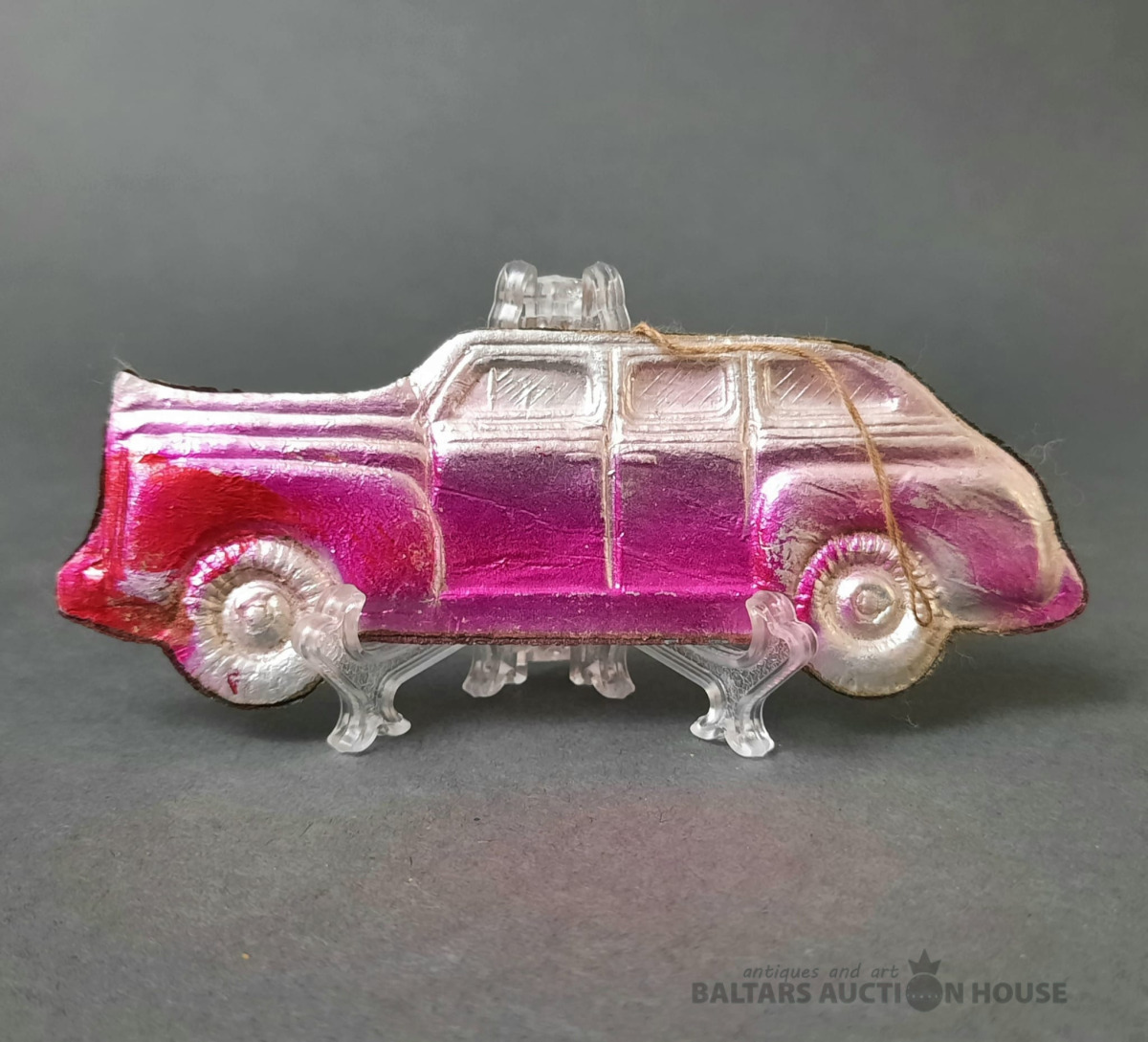 2 antīkas Ziemassvētku eglītes rotājumi. Lāču automašīna, PSRS laikmets.